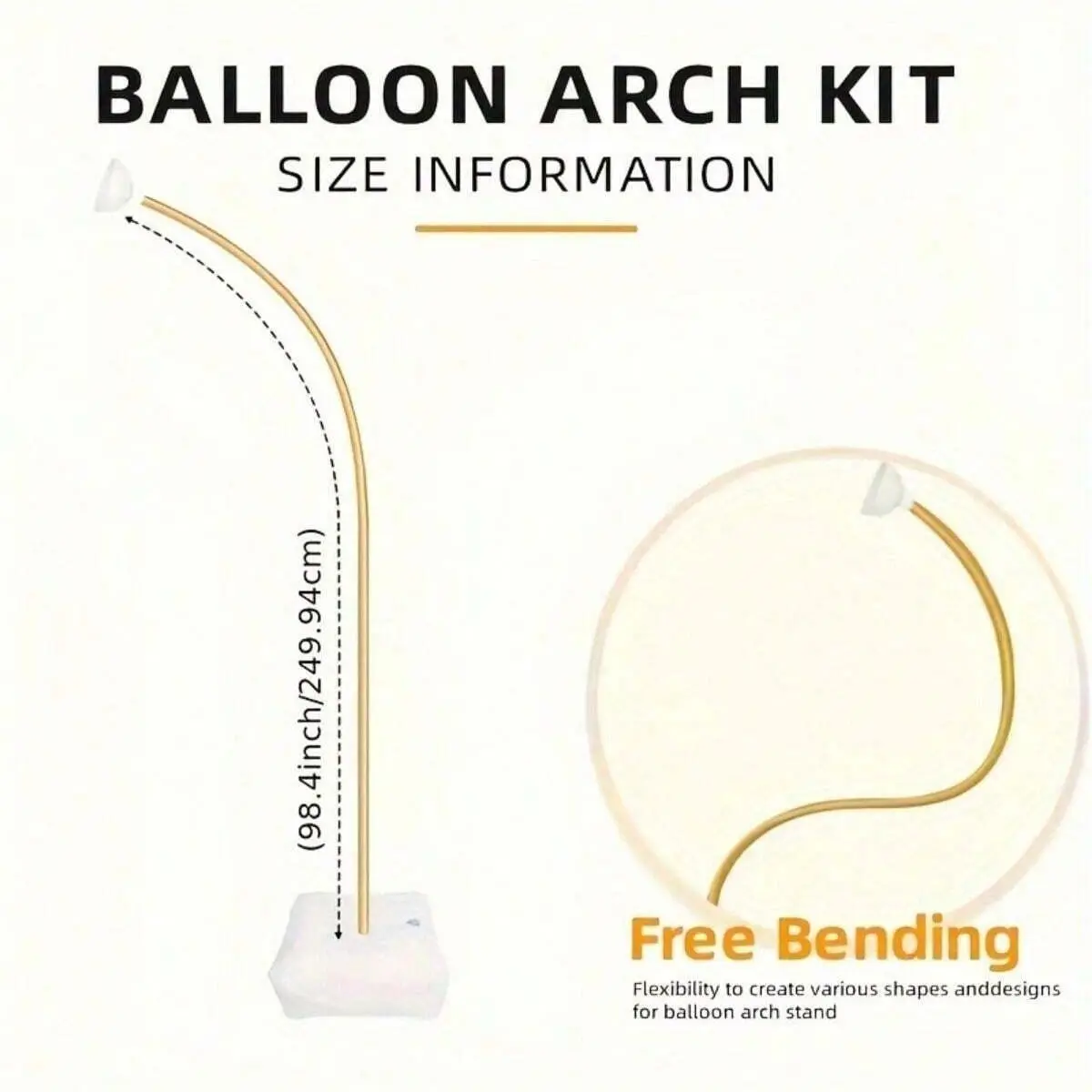 8.2ft Golden Balloon Arch Kit with Base - Flexible Half-Arch Stand for Weddings, Birthdays & More - Versatile Floor Frame Backdrop for Home, Yard, Lawn Decor