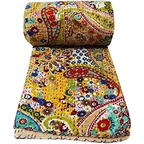 This Indian handmade kantha cotton quilt is completely hand stitched by Women artisan in Rajasthan, India. Kantha is a uniquely quilted texture made from layering colorful vintage. These quilts are famed and admired due to their Kantha work. Add classic style and elegance to your bedroom with a solid quilt set that comes in two patterns and an array of colors. They have different beautiful warm and charming colors, designs and patterns on either side which gives a distinct look. A beautiful creation to give your home a traditional yet authentic colorful. This kantha coverlet is reversible with contrasting vibrant patterns and colors. This kantha quilts can be used for bed covering, bedspread, blanket, bed-cover, quilt, throw. Quilts are made with quality fabric and are reversible which can be used from both sides.