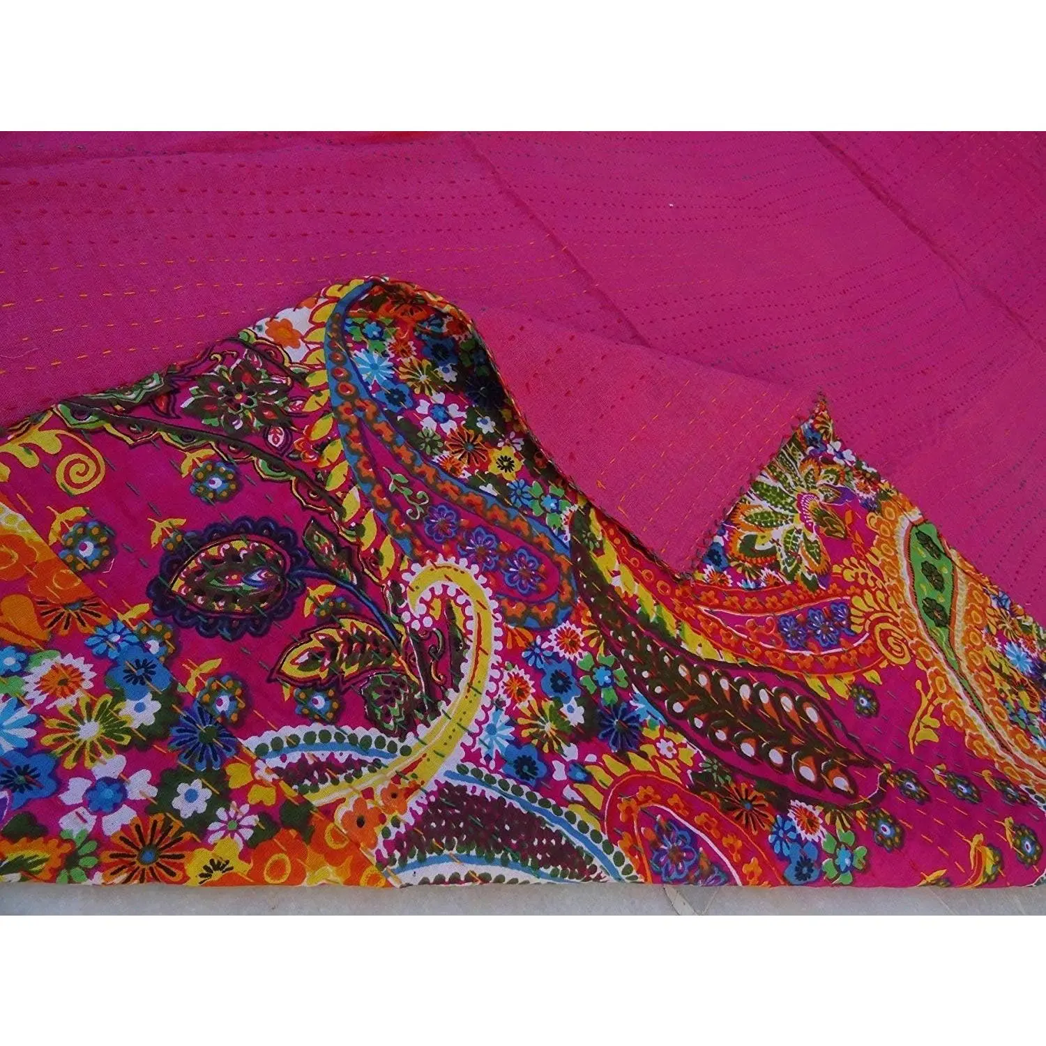 CottonImportedColor : Pink, Size : 90x60 Inches (225x125 cm) ApproxThis Kantha Quilts Can Be Used For Bed Covering, Bedspread, Blanket, Bedcover, Quilt, Throw.Quilts Are Made With Quality Fabric And Are Reversible Which Can Be Used From Both SidesKantha Is The Ancient Indian Art Of Embroidery.It Is Hand-Stitched And Handmade Vintage Art Piece Which Is Unique, Charming And Perfect Piece For Your Home.It Can Make Any Room Alive With It's Style, Print And Embroidered Traditional Look.An Ideal Gift For Weddings, Housewarmings, Engagements And AnniversariesCare: Gentle Hand Wash Separately in Cold Water, Dry in Shade only.Special Remark: The Images Represent Actual Product Though Color Of The Image And Product May Slightly Differ Due To Monitor Resolution.