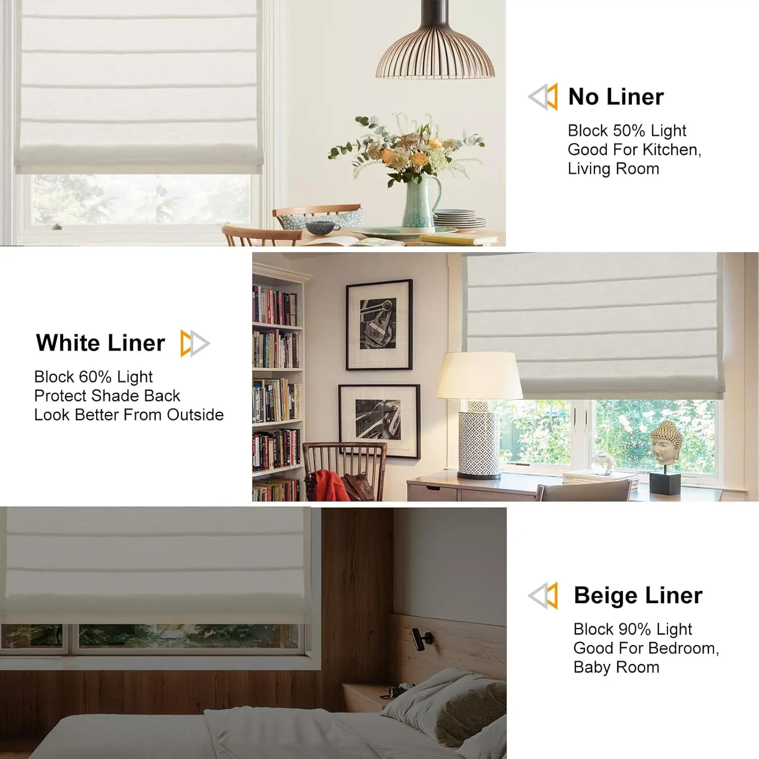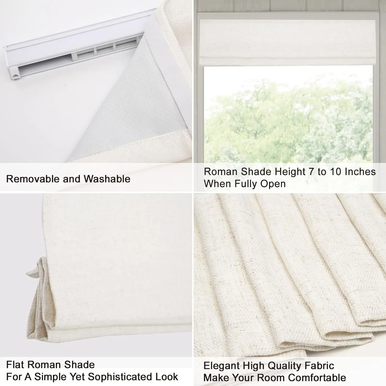 Cordless Linen Roman Shades, Natural Custom Fabric Room Darkening Window Blinds for Doors, French Doors, Kitchen, Bathroom 46" W x 72" H