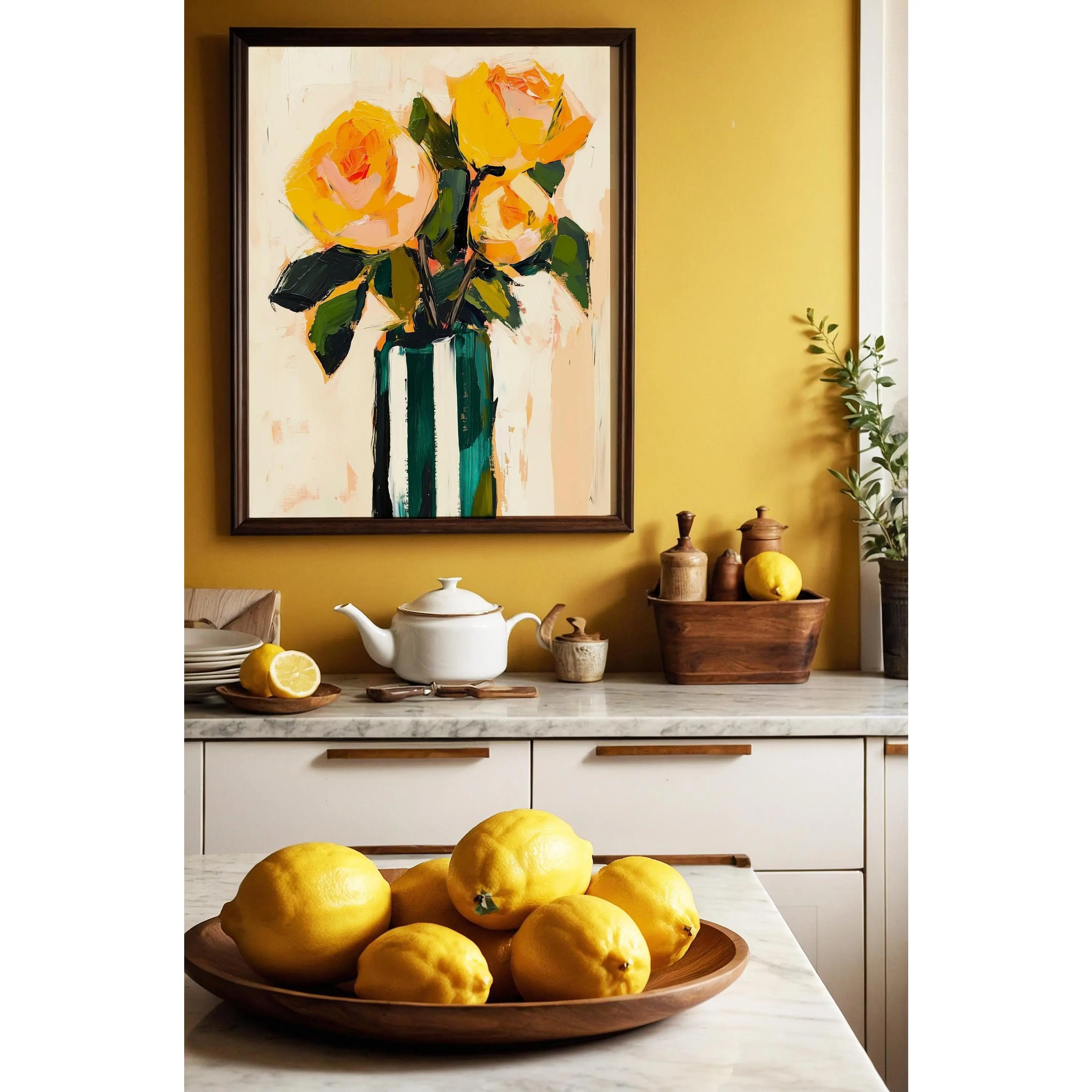 [Sale off up to 40%] [Frame Canvas] Yellow Roses Abstract Painting, Minimalist Floral Art, Pastel Oil Canvas Print