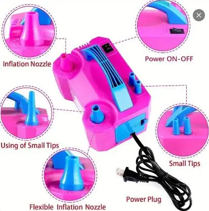 ·【Balloon Blower Machine Electric Product Information】Power: 600W.Input voltage :110-120V. Frequency: 50/60Hz,.Air volume 750 (L/min) Light Weight:2.9lb.
