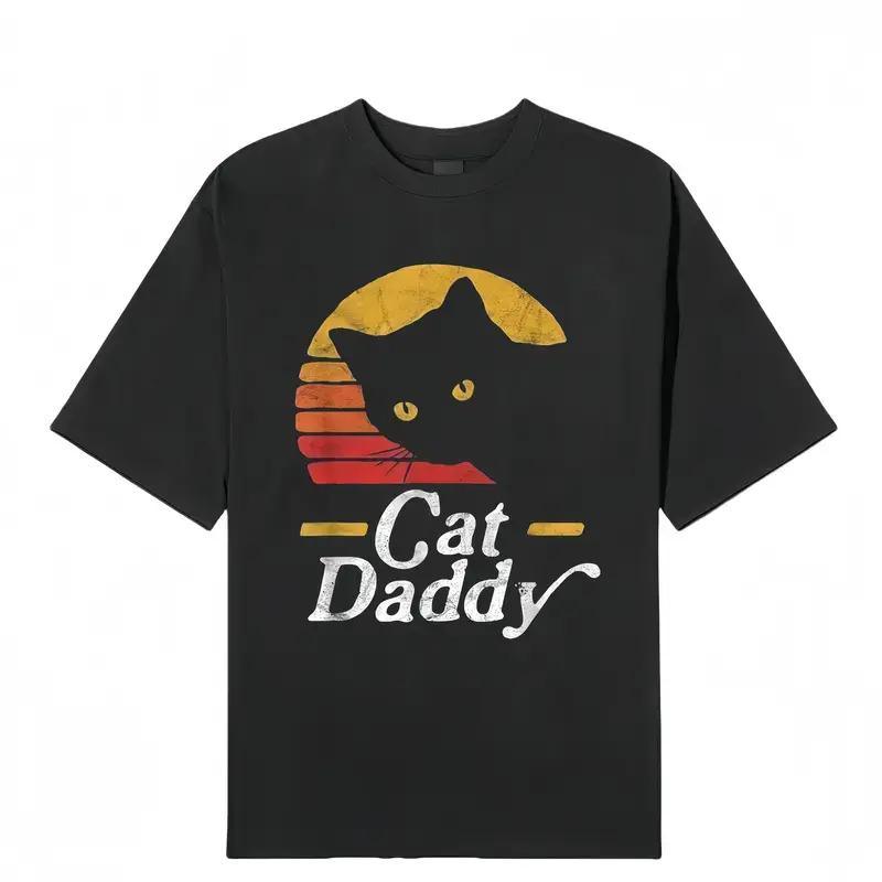 Summer Vintage 80s Style Distressed Cat T-Shirts for Dads