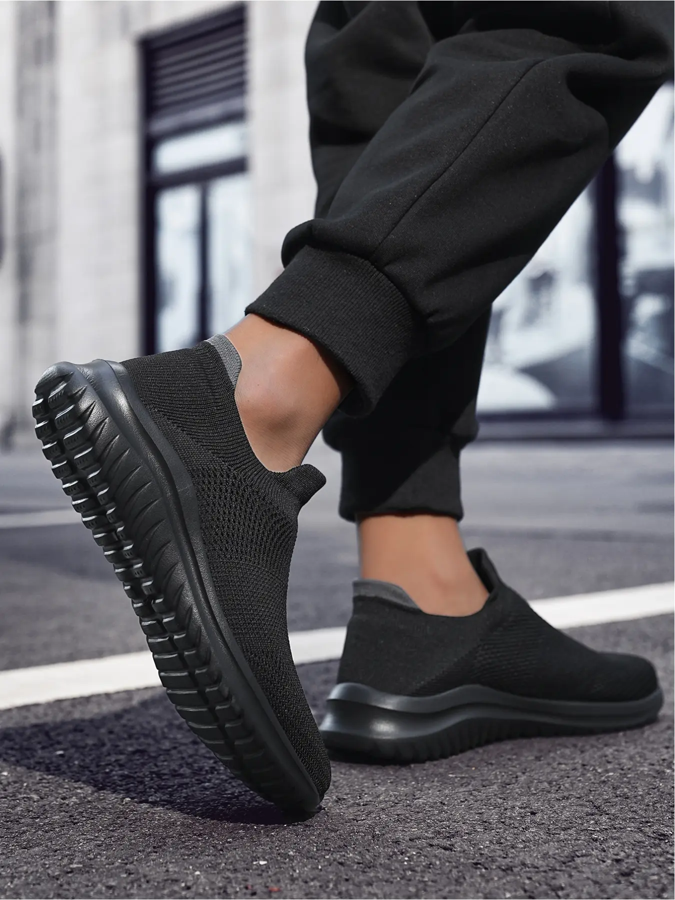 1 Pair of Unisex Flyknit Slip-On Casual Shoes - Flyknit Knitted Upper + Elastic Slip-On Collar, Suitable for Work Commute & Shopping Travel Scenarios, Breathable & Comfortable Easy To Wear Lightweight & Non-Slip