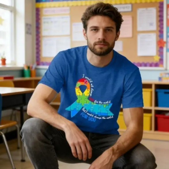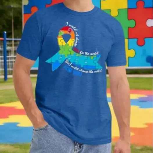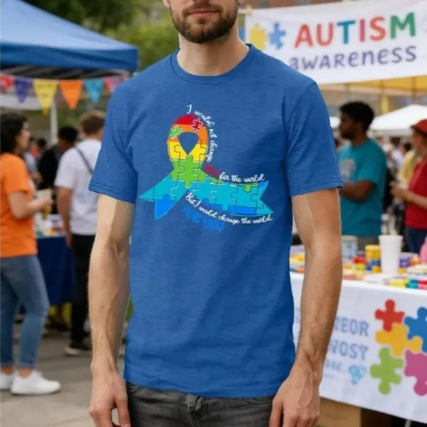 5. PECHAR Autism Awareness Shirt Men Autism Acceptance T Shirt Autism Puzzle Piece Graphic Tees Blue Short Sleeve Tops