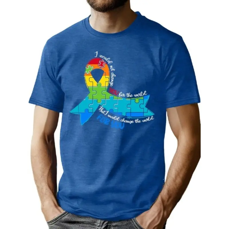 PECHAR Autism Awareness Shirt Men Autism Acceptance T Shirt Autism Puzzle Piece Graphic Tees Blue Short Sleeve Tops