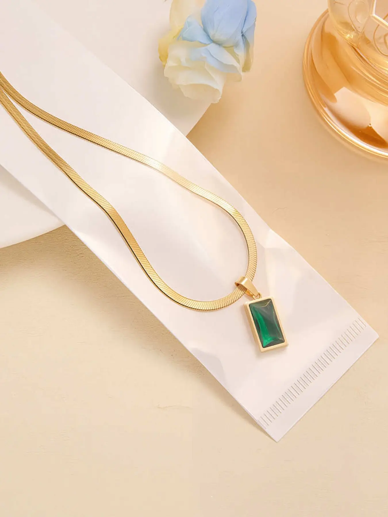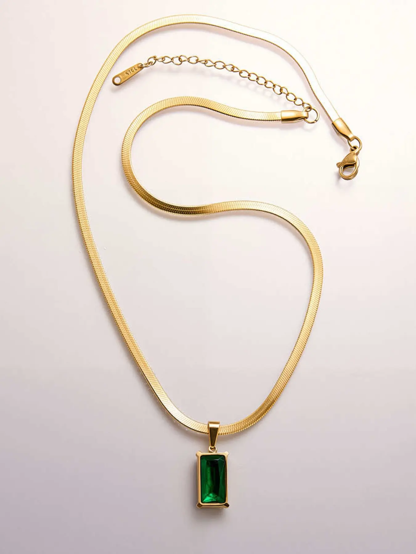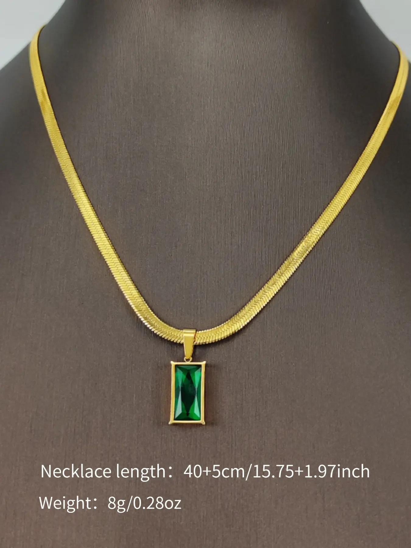 Luxury Gold Plated Green Gem Necklace Earrings Set, Elegant Emerald Jewelry for Women, Vintage Style Snake Chain Pendant Earrings, Perfect Gift for Her