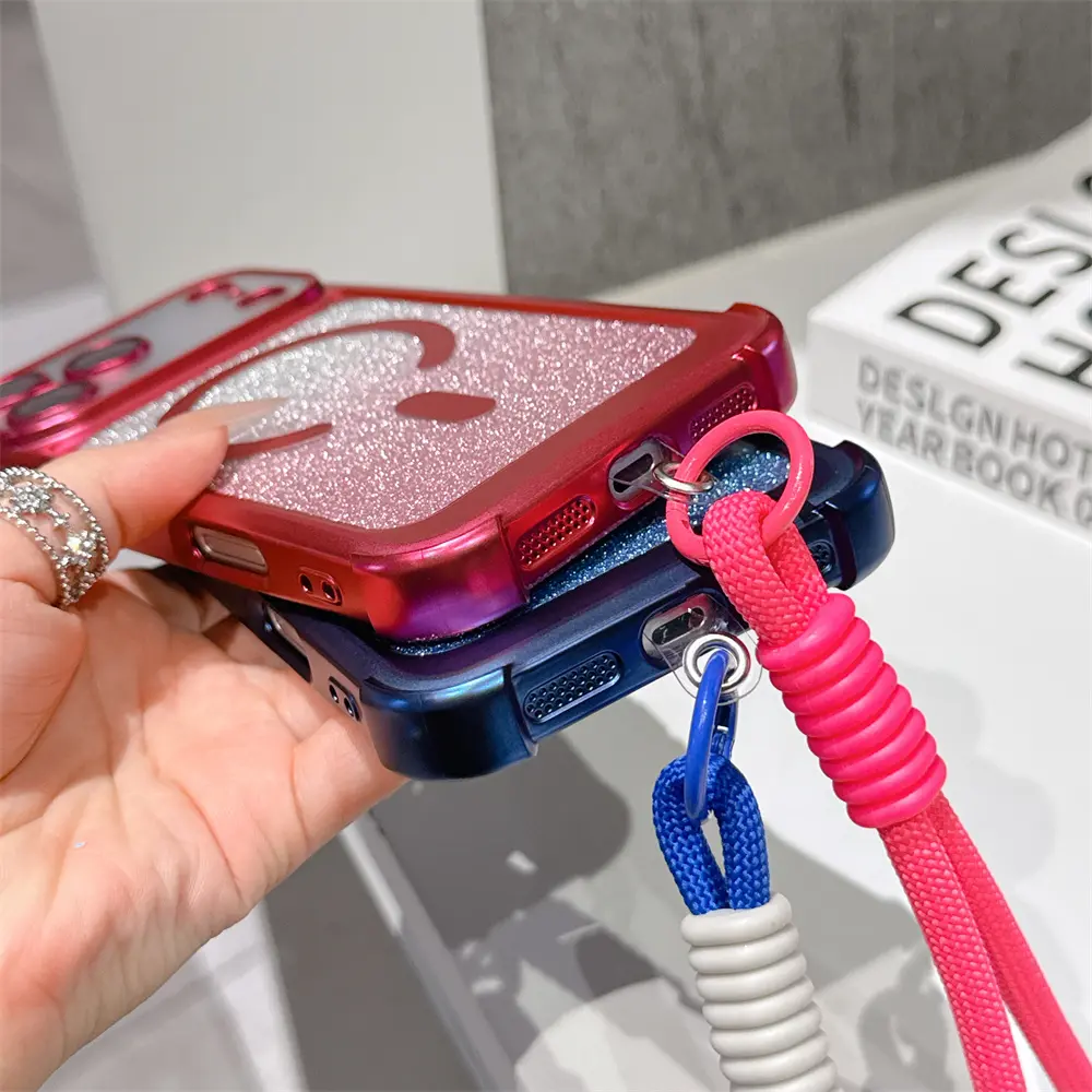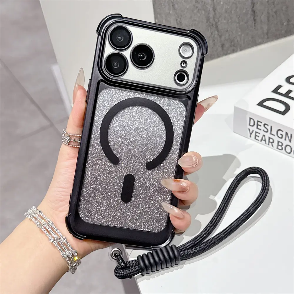 Luxury Wrist Strap Glitter Lanyard Phone Case For iPhone 17 Air 16 15 14 13 Pro Max For Magsafe Wireless Charging Armor Cover