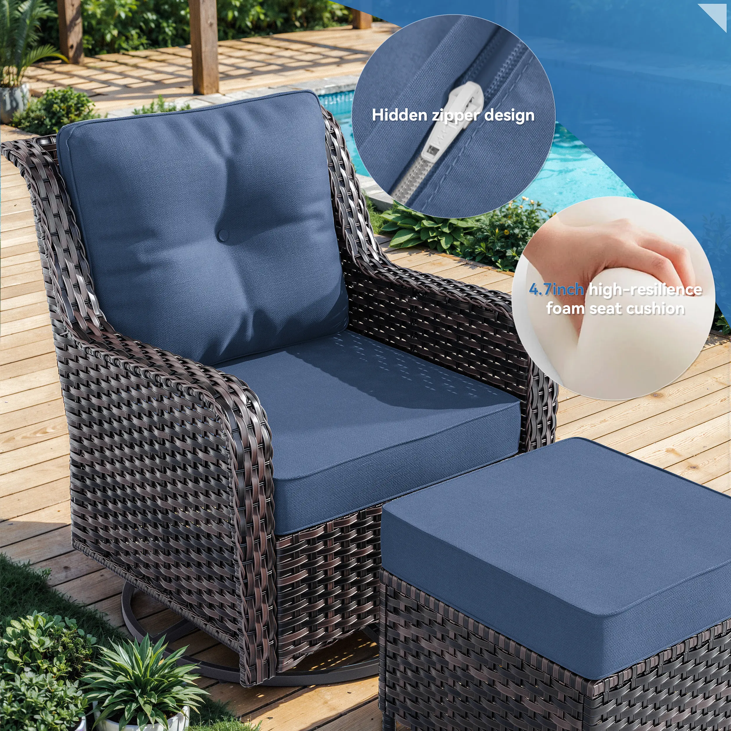 ·【Thoughtful Design】Seat and back cushion covers are made of water-resistant fabric, which is easy to clean, quick-drying and long-lasting. The backrest features a button-fixed design for a secure, neat fit. Removable cushions make daily cleaning and maintenance very convenient.