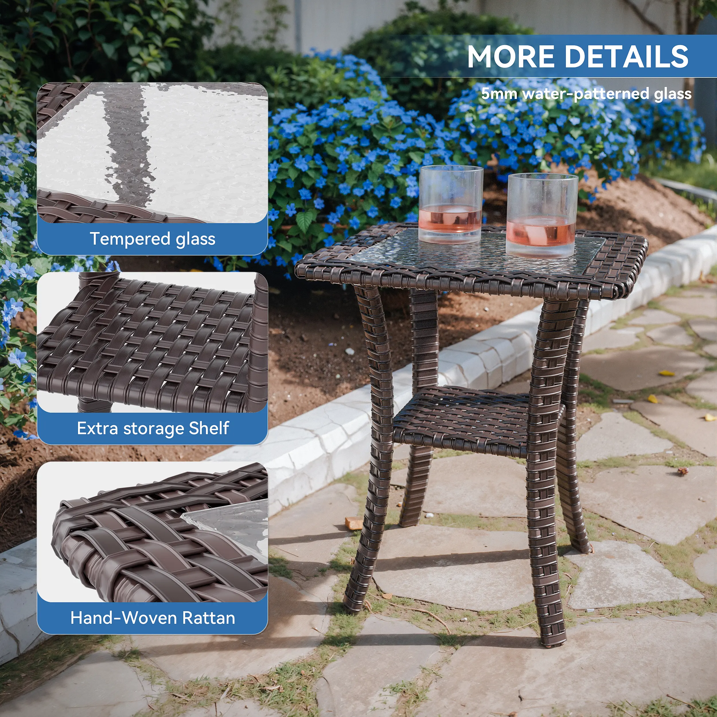 ·【Rattan Weaving Craft】Made of thickened and widened PE rattan, it is waterproof, UV-resistant and corrosion-resistant. The rattan is tightly woven for both good looks and durability, not easy to break even with long-term outdoor use.