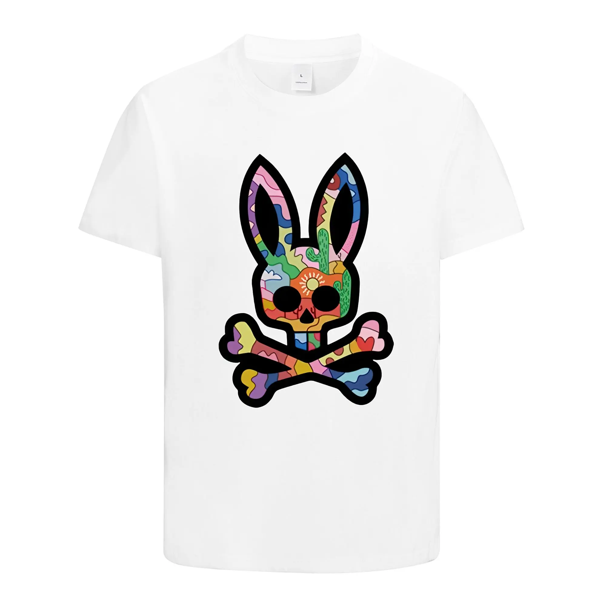 This bone graphic t-shirt features a rabbit design, perfect for hip hop style.It's a unisex piece, suitable for both men and women.The short sleeve crew neck design makes it ideal for summer and spring wear.It's a casual clothing item, perfect for street style.