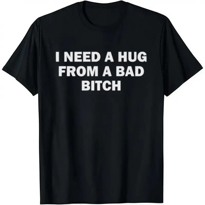 I Need A Hug From A Bad B*tch T-Shirt Cotton Crew Neck Short Sleeve Casual Classic Graphic Tee for Men Comfortable Versatile Everyday Wear