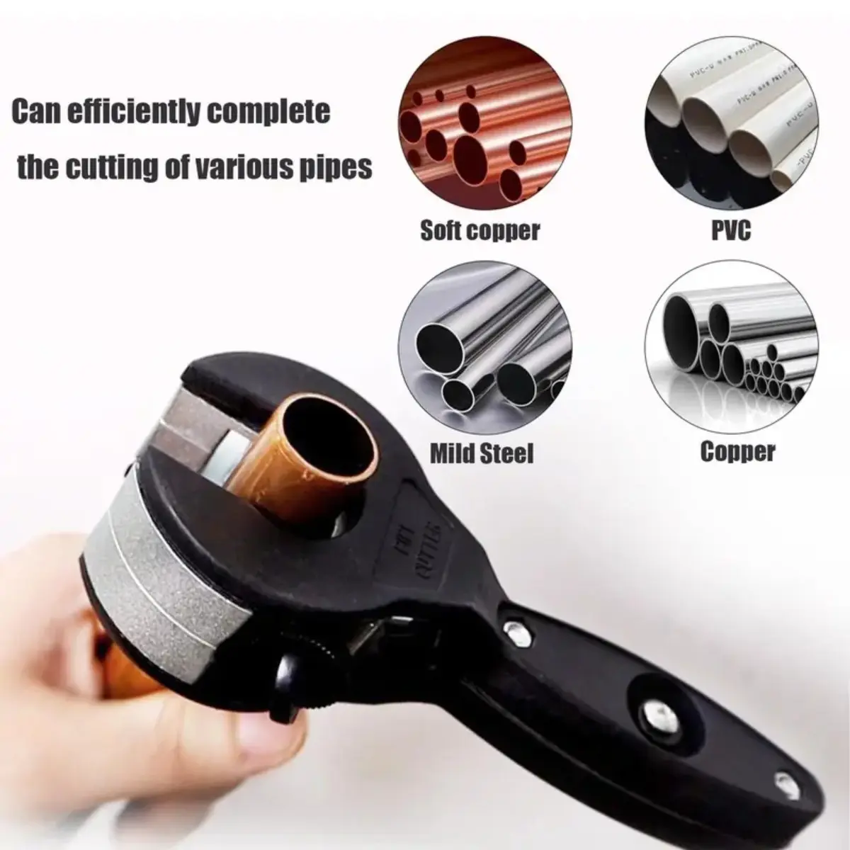 ·Efficient Cutting:The ratchet tube cutter is designed for cutting 8-29mm stainless steel, copper, and aluminium pipes. lt allows for quickand efficient cutting without the need to rotate the tool completelyaround the tubing.