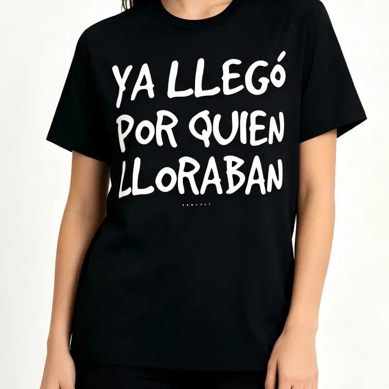 Funny Spanish Saying T-Shirt - "Ya Llego Por Quien Lloraban" Humorous Graphic Tee, Black with White Text, Regular Fit Short Sleeve Round Neck Casual Shirt for Adults, Machine Washable
