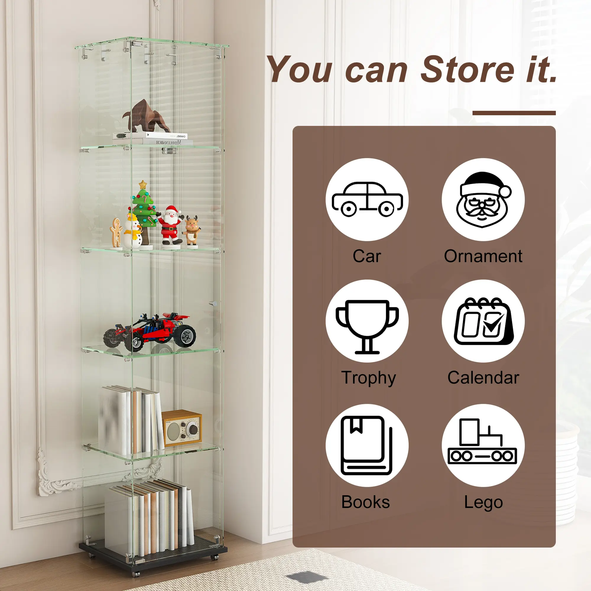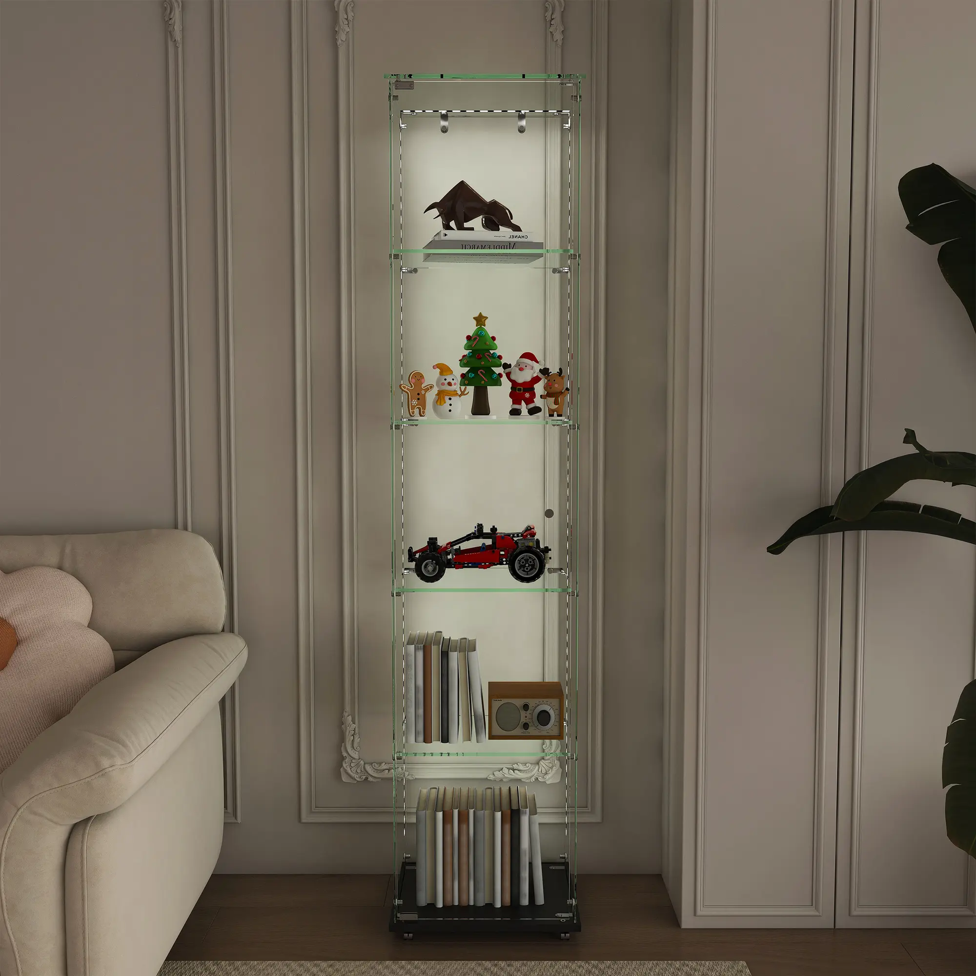 Elevate your collectibles and decor with this premium 4-tier glass display case, featuring 5 dynamic LED modes and a single tempered glass door for easy access. Floor-standing and easy to assemble, it combines elegant design, durability, and convenience, perfect for showcasing your treasures in home or office spaces.