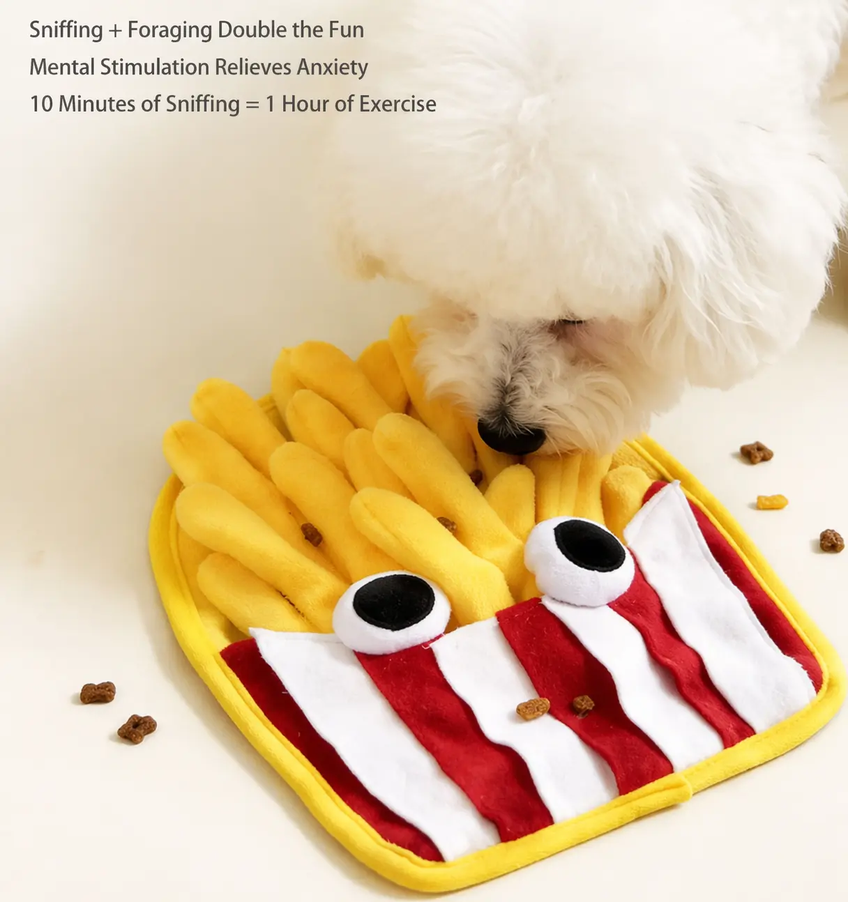 Does your dog go wild for the smell of bacon, cheese, or peanut butter? Then bring the fun of “kitchen foraging” right to their paws with the Sniffin’ Kitchen Delicious Food Series Snuffle Mat – where mealtime becomes a mouthwatering treasure hunt!