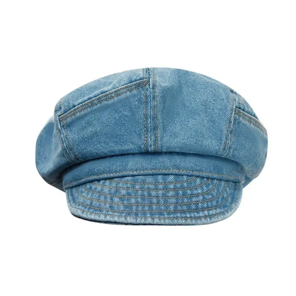 Fashion Vintage Washed Denim Beret Cloud Newsboy Octagonal Cap Visor Artist Peaked Hat Women