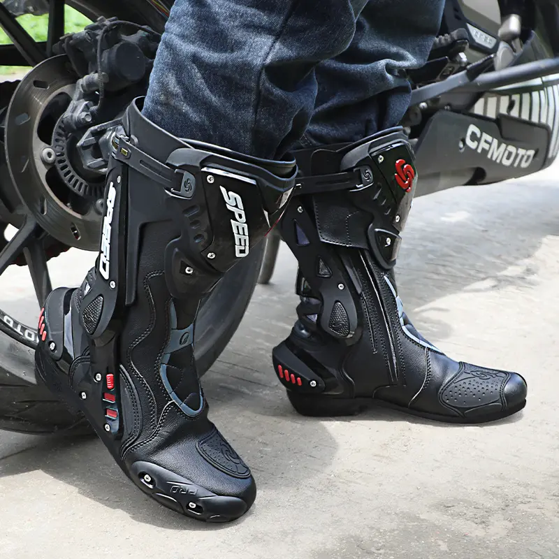 Professional motorcycle riding boots for both men and women, suitable for all seasons, non-slip and wear-resistant, high-top protective motorbike shoes, comfortable and breathable, ideal for long-distance riding gear