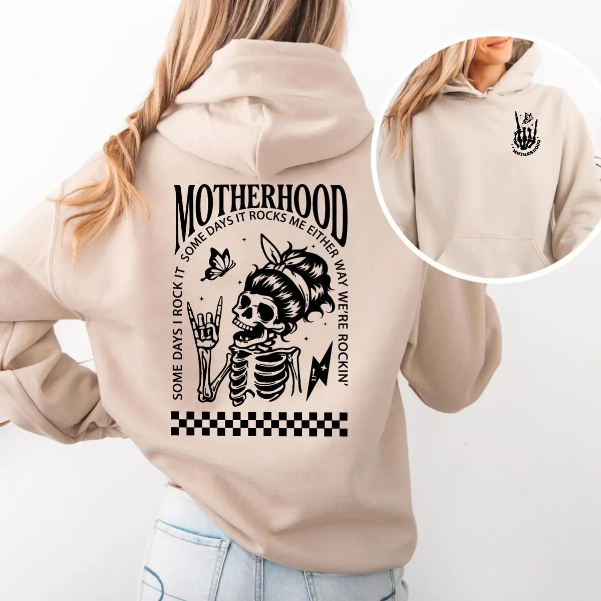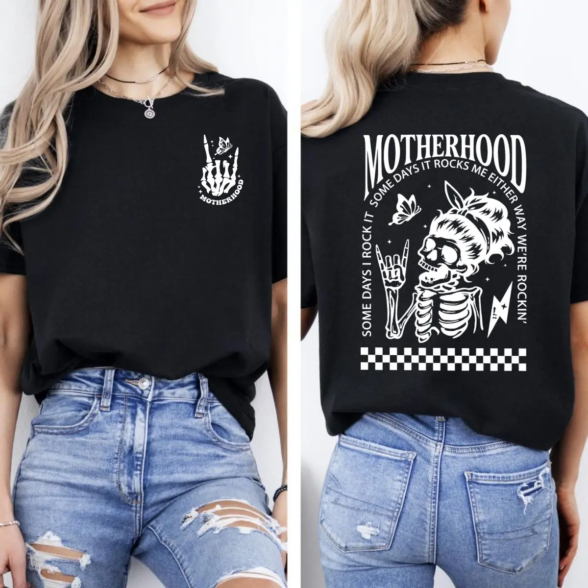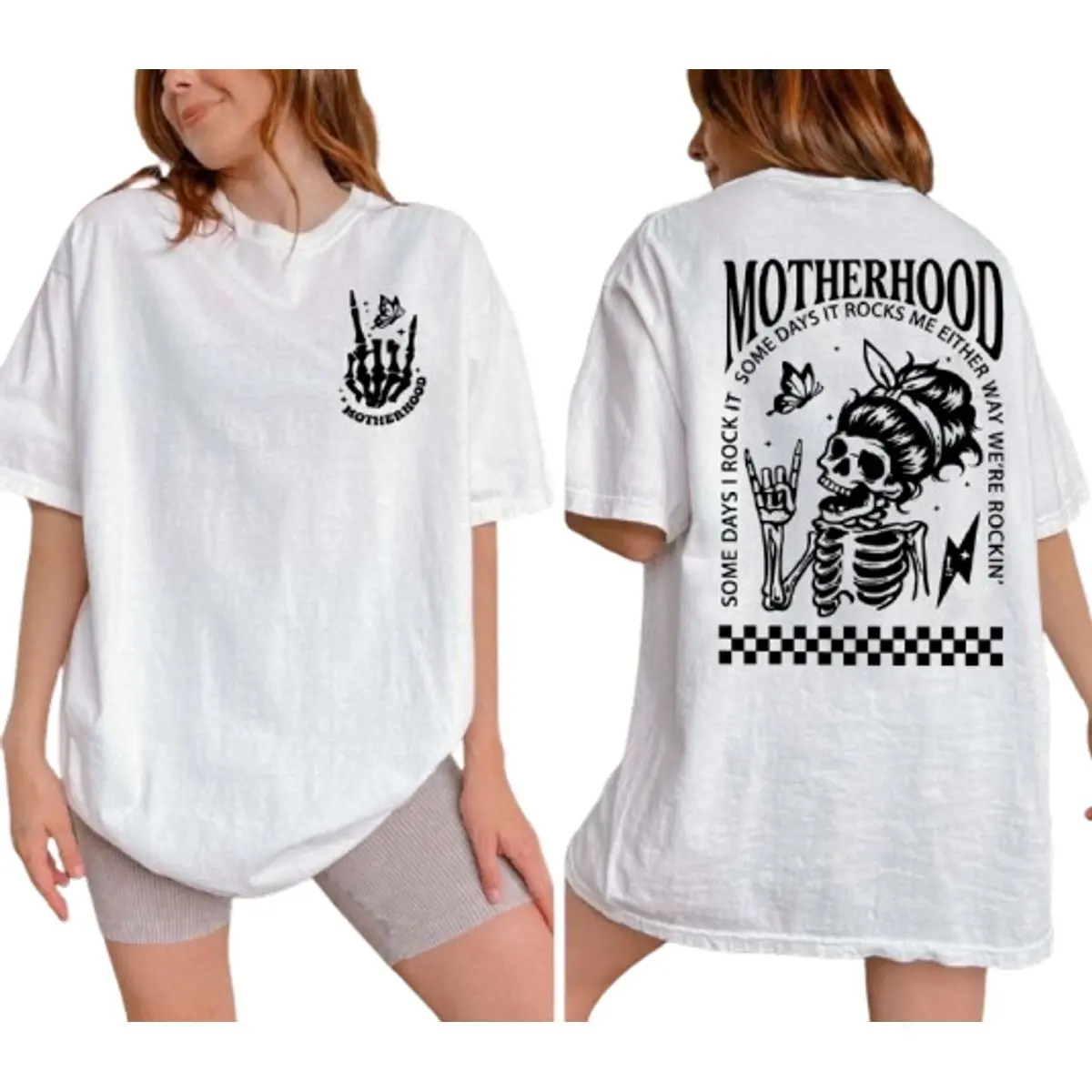 Motherhood rocks me either way shirt, skeleton mom graphic tee, funny mom life sweatshirt, rocker mom gift, trendy mom outfit, cool mothers day hoodie, unisex sweater pullover tee