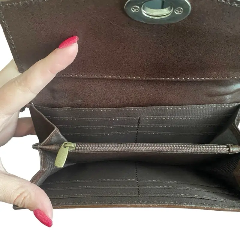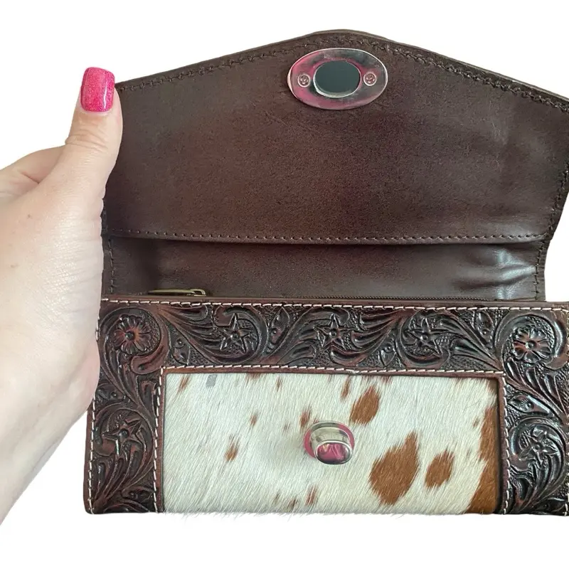 It's a perfect accessory for both casual and formal occasions. The tooling detail makes it stand out, while the cowhide material ensures it remains a reliable companion for all your needs.