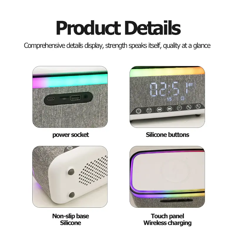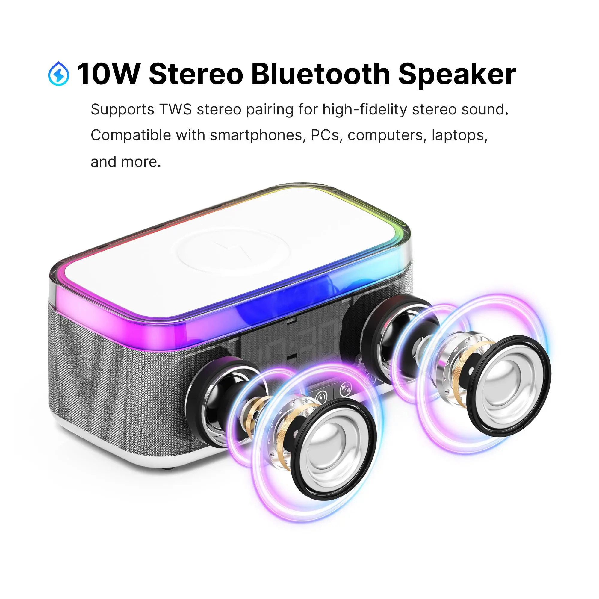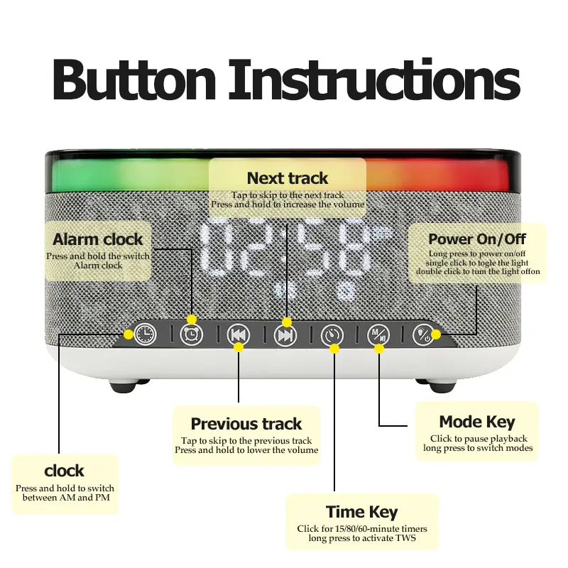 ·All-in-One Smart Speaker: Bluetooth speaker + digital clock + alarm clock + RGB ambient light + FM radio. All needs met in one device, perfectly suited for bedroom, study or desktop use.
