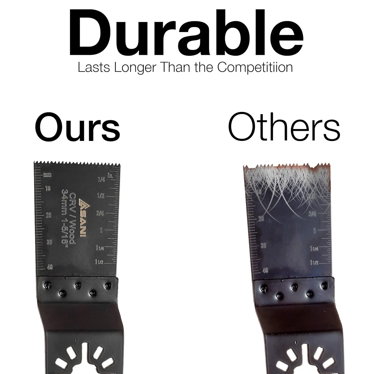 ENHANCE THE VERSATILITY: Equip your oscillating multi-tool to do more with this 24-piece accessory set.It includes cutting blades for wood, drywall, and metal, a carbide blade, scraper blade, sanding pads, carbide grout removal rasp, and more tools to handle most tasks.AFFORDABLE QUALITY: Get durable oscillating saw blades without breaking the bank.You’ll love the quality of these oscillating tool accessories.Unlike other oscillating multitool blades that easily dull, we’ve crafted ours using premium steel to withstand it all.HANDLE ANY JOB: Whether you’re sanding hardwood, doing some tile or floor work, removing paint, grinding cement, dabbling in some carpentry, or looking to cut through wood, plastic, metal, or drywall, you’ll find the right tool in this oscillating accessory kit.WIDE COMPATIBILITY: These oscillating tool attachments are a perfect fit for the Makita Multitool (XMT032), HFT oscillating tool, Fein Multi Master Pro, Milwaukee M18 multi tool, Worx WX628L/665L, Ridgid JobMax, Porter Cable, Harbor Freight Chicago electric tool, Ryobi multitool, and Genesis Pro among others.NOT COMPATIBLE WITH: Quick change or blade quick release tools, Dewalt DCS355, Dremel MM40/45, Fein Multi Master (Non-Pro models), Worx 20V Max, Worx wx682.9, Black & Decker BD Matrix, Makita XMT04ZB, and Rockwell Sonicrafter models.For any models/brands not listed, please contact us first to confirm compatiblity.