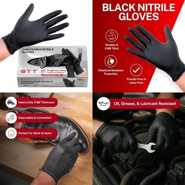 Stay protected and work with confidence using these Disposable Black Nitrile Gloves, designed for durability, flexibility, and professional use. With a strong 6 mil thickness, they provide excellent resistance against chemicals, oils, and everyday wear.