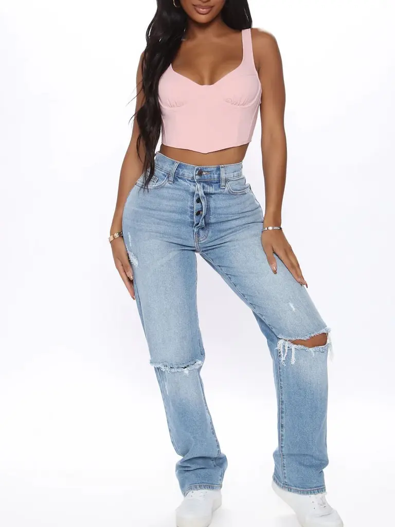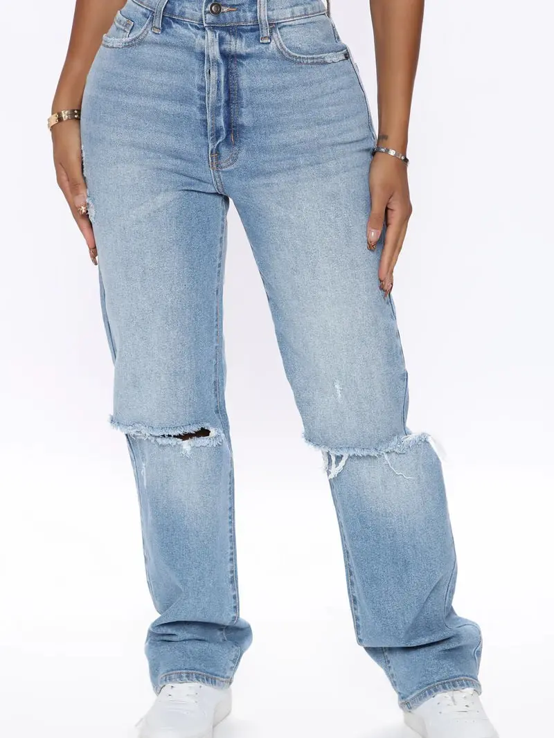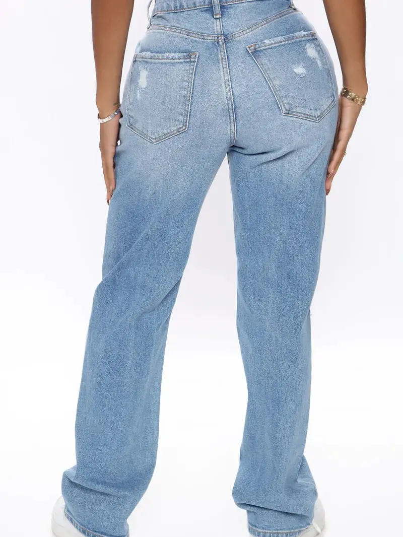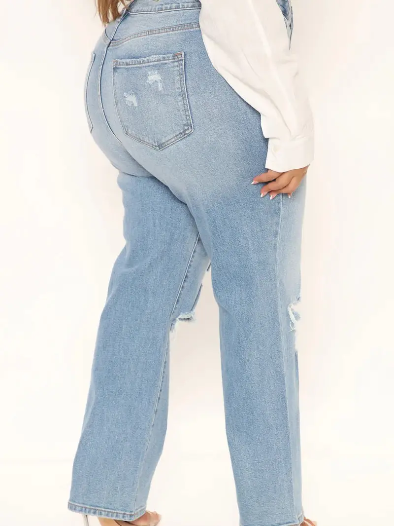 As You Please Ripped Straight Leg Jeans - Light Blue Wash