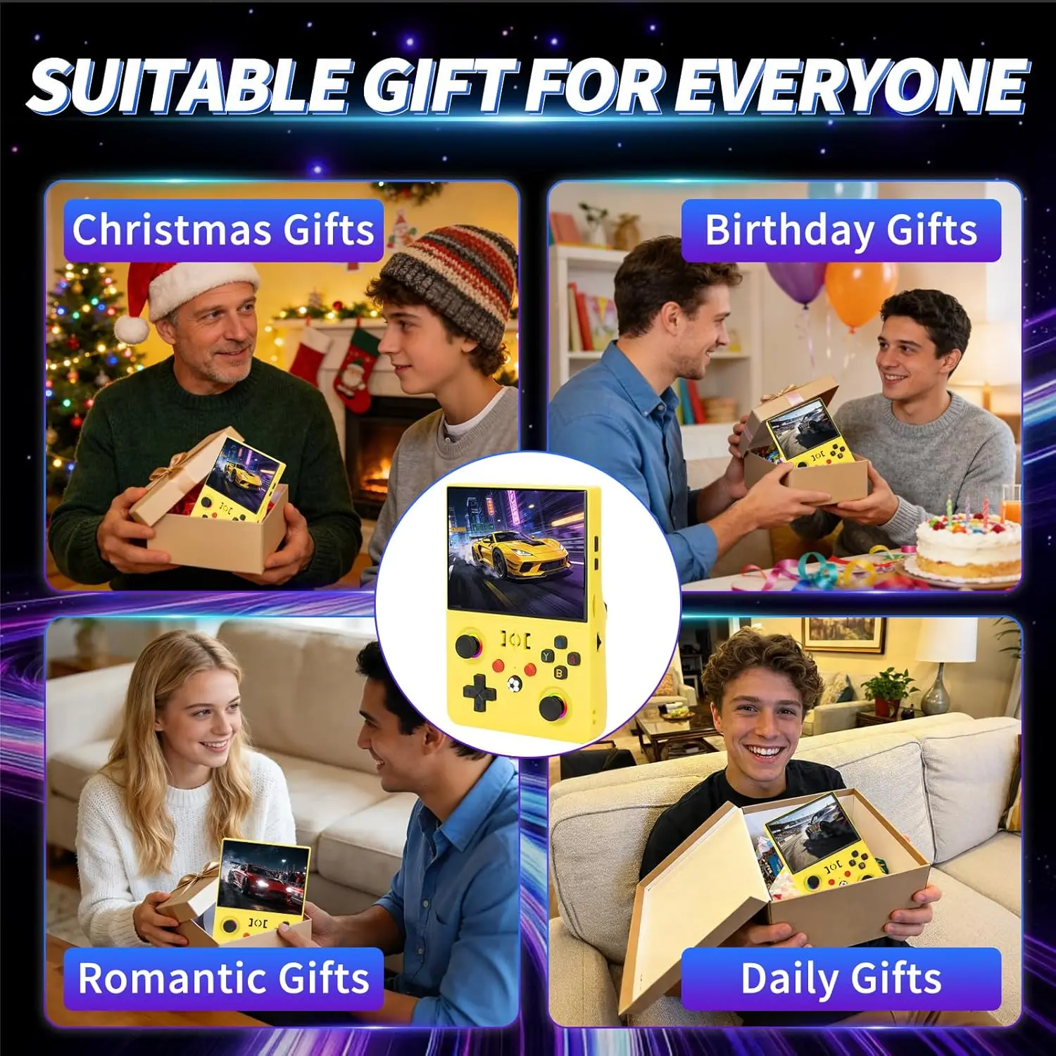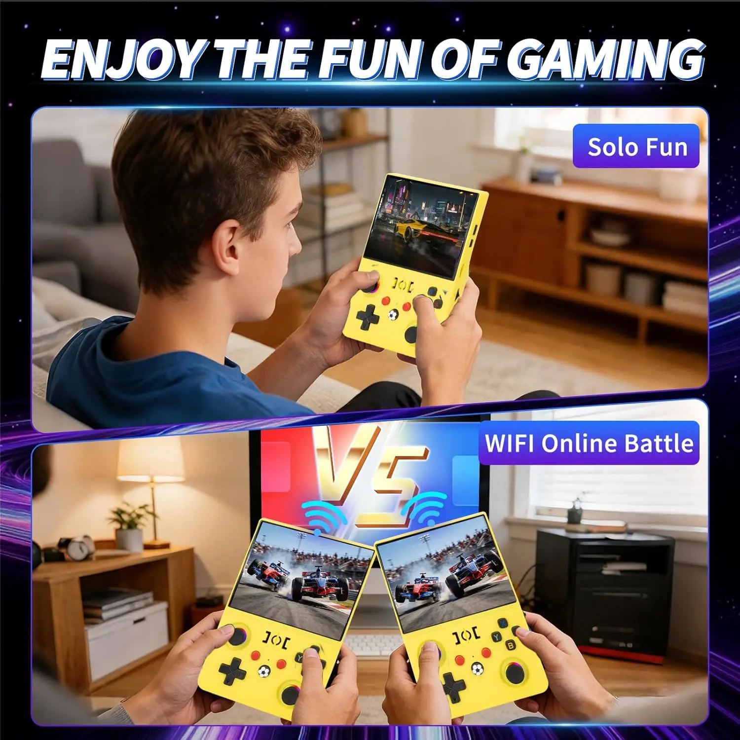 ·Pocket-Ready, Game-Ready:The R36MAX Ⅱ retro handheld game console compresses the classic memories into compact and portable segments. It is lightweight and compact, and can be easily tucked into a pocket or backpack. It is also equipped with a 4000 mAh battery, which can provide long-lasting power and allow you to play to your heart's content. When you are traveling, waiting in line or taking a break, you can take it out at any time to play, allowing the classic to be brought back and allowing nostalgia to flow unrestrictedly