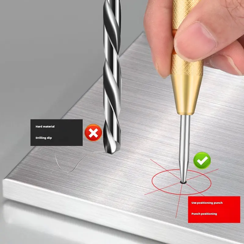[Built to Last]:Crafted from premium stainless steel with a sleek black and chrome finish, this center punch is designed for durability.The anti-slip knurled grip ensures solid control, while the sharp steel tip guarantees clean, precise marks-every time.