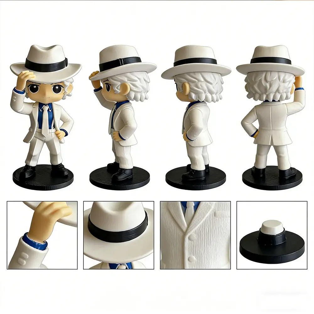 MJ Moonwalk Figurine Desktop Ornament - Collectible Figure with Hat and Suit