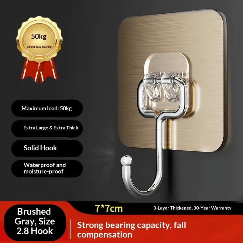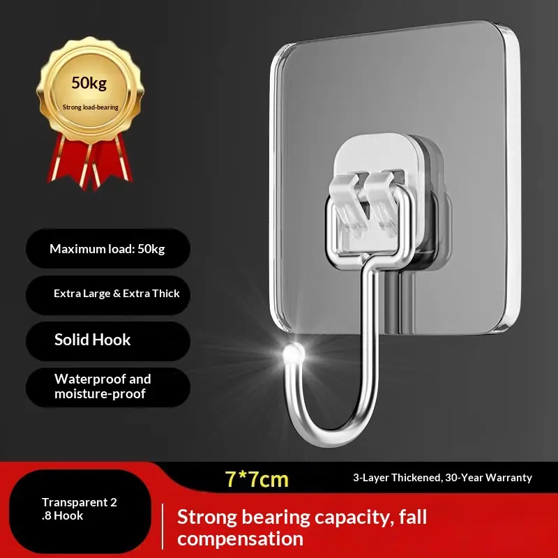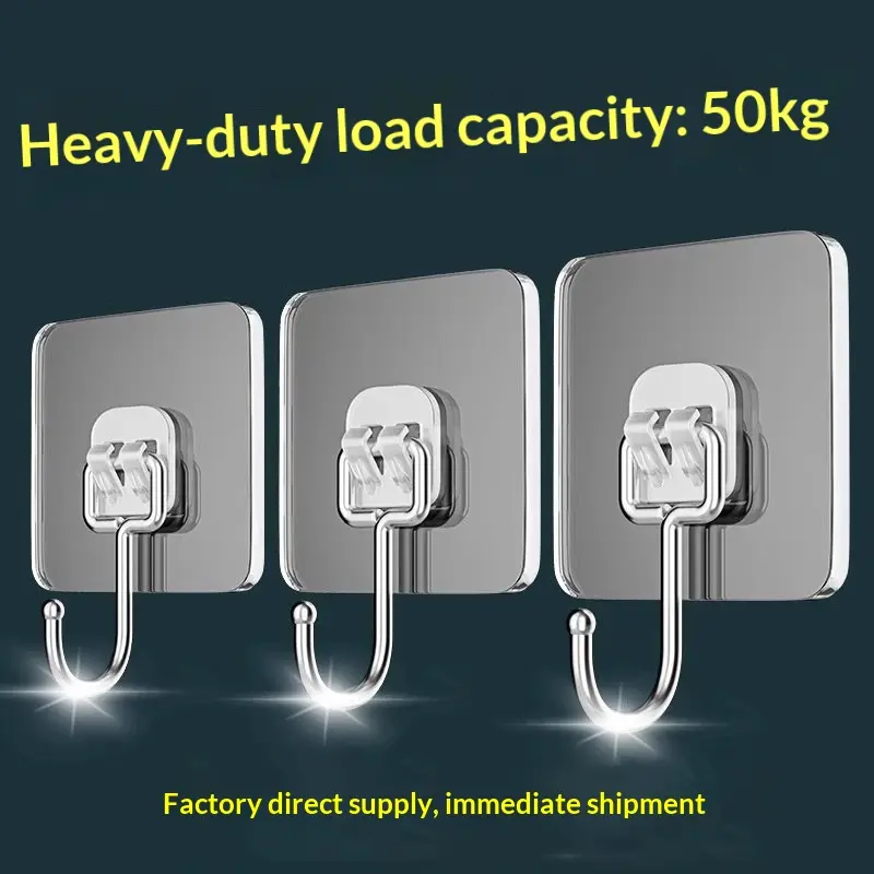 20 Counts Heavy Duty Transparent Adhesive Wall Hooks Stainless Steel Multiuse Key Towel Hanger Kitchen Bathroom Storage Accessories