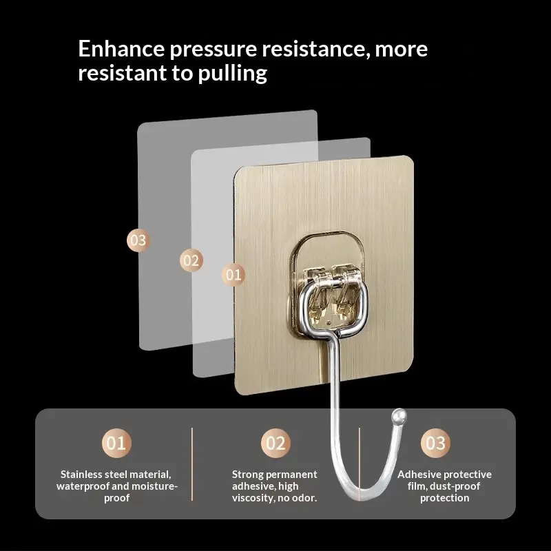 20 pieces per packStrong Adhesive Plastic Hook with Metal Durability – Gold Square Design for Bathroom, Kitchen, and Home Use