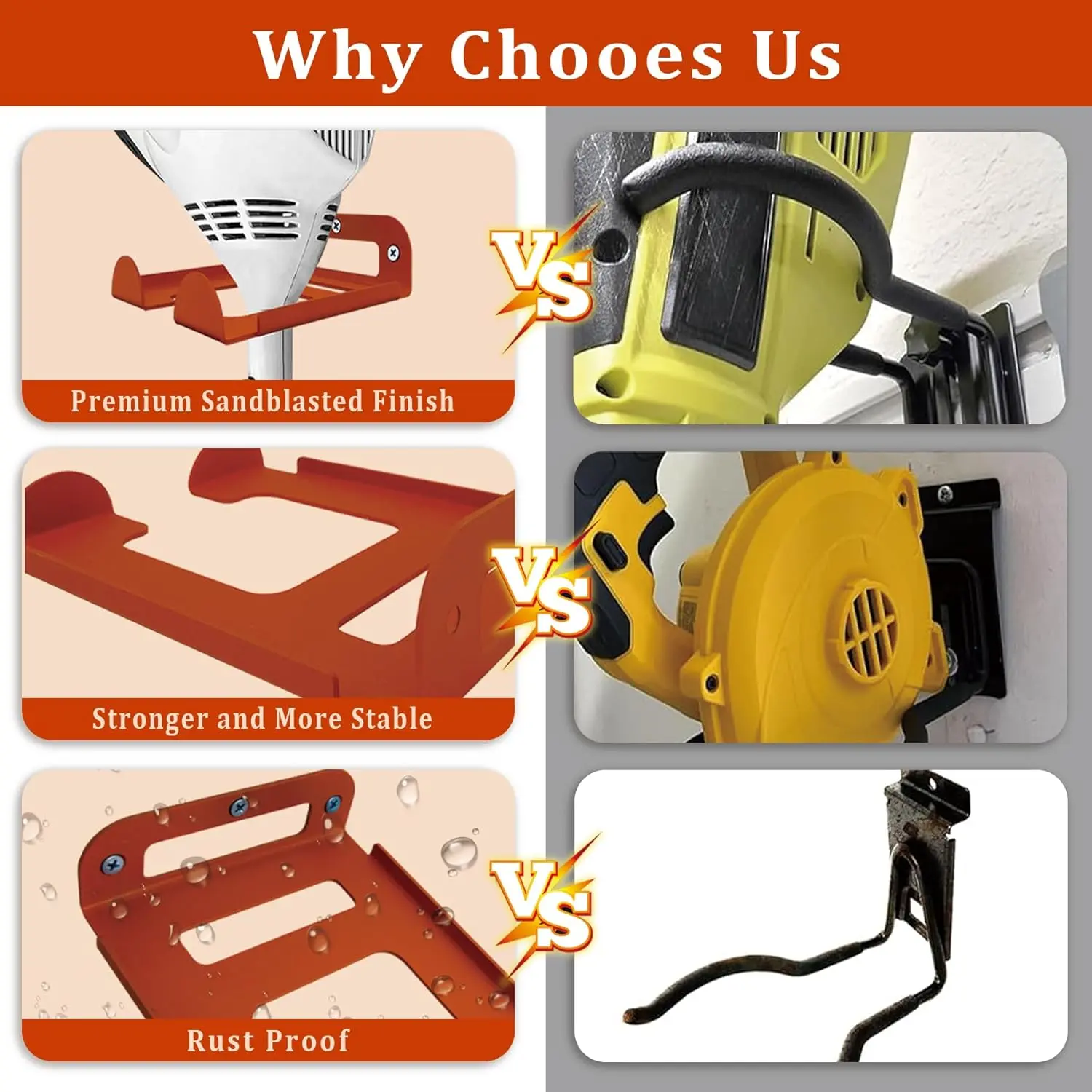 ✅Heavy Duty Weedeater Rack Wall Mount: The weed eater hanger supports up to 150 lbs.Built for strength and stability, this weedeater rack is ideal for weed eaters, trimmers, and weed whackers.Mounts securely to your garage or shed wall.✅Premium Sandblasted Finish for Durability: The trimmer hanger hook kit features a high-quality sandblasted surface for enhanced corrosion resistance, scratch protection, and a sleek, professional look that lasts.✅Premium Materials: The grass trimmer rack is made of thickened stainless steel, which is stronger and has high bearing capacity, waterproof and anti-rust, resistance to chipping and cracking, does not hurt your hands and tools✅Precision Fit for Most Trimmers: The sturdy garage hooks engineered with carefully adjusted dimensions to fit most weed eater and grass trimmer sizes.Enjoy a secure, universal fit for a wide range of garden tools.✅Easy Installation – 2 Pack Includes All Hardware: The wall mount string trimmer hanger simple to install on most wall surfaces.Includes screws and anchors for secure mounting, making it easy to create a clean, organized garage or shed.Transform your cluttered garage into a tidy, efficient space in minutes.