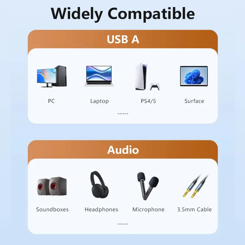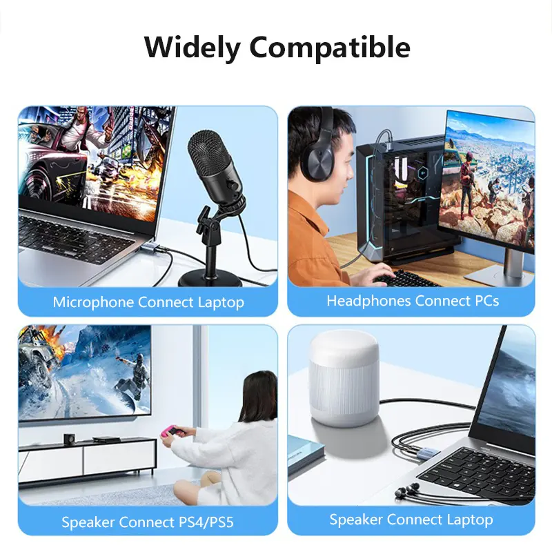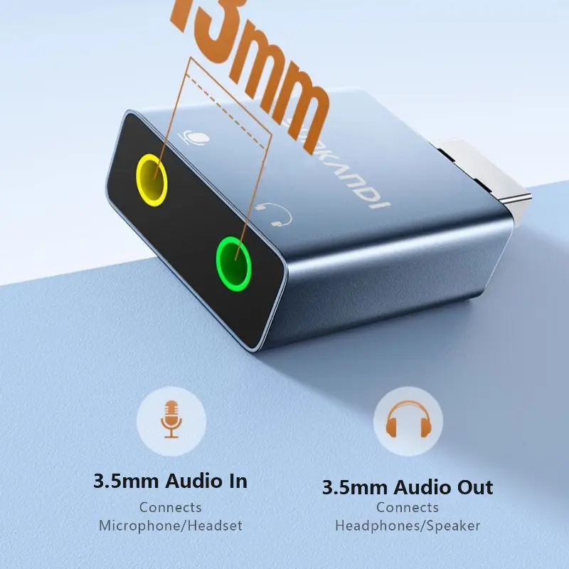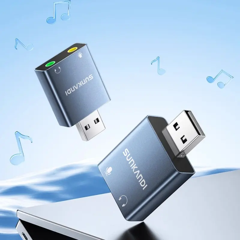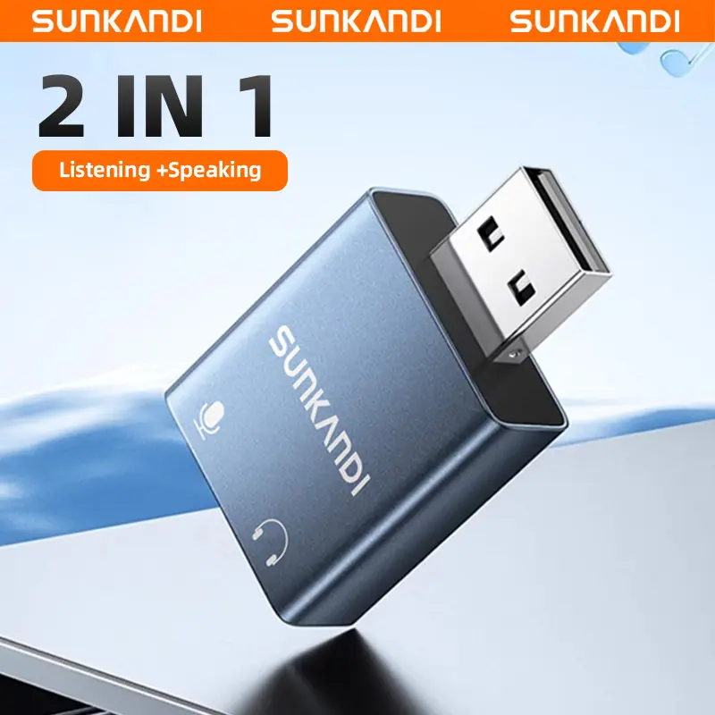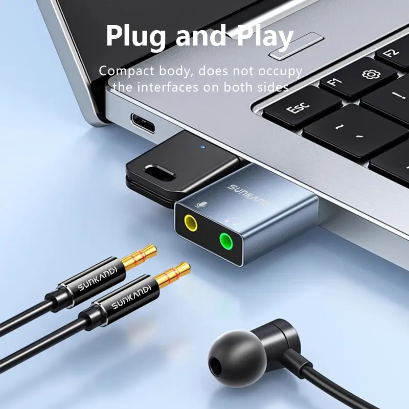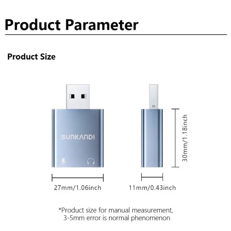 SUNKANDI USB to Audio Jack Sound Card Adapter with 3.5mm Headphone and Microphone USB to Aux 3.5mm External Audio Converter for Windows Mac Linux PC Laptops Desktops PS5 Switch 2