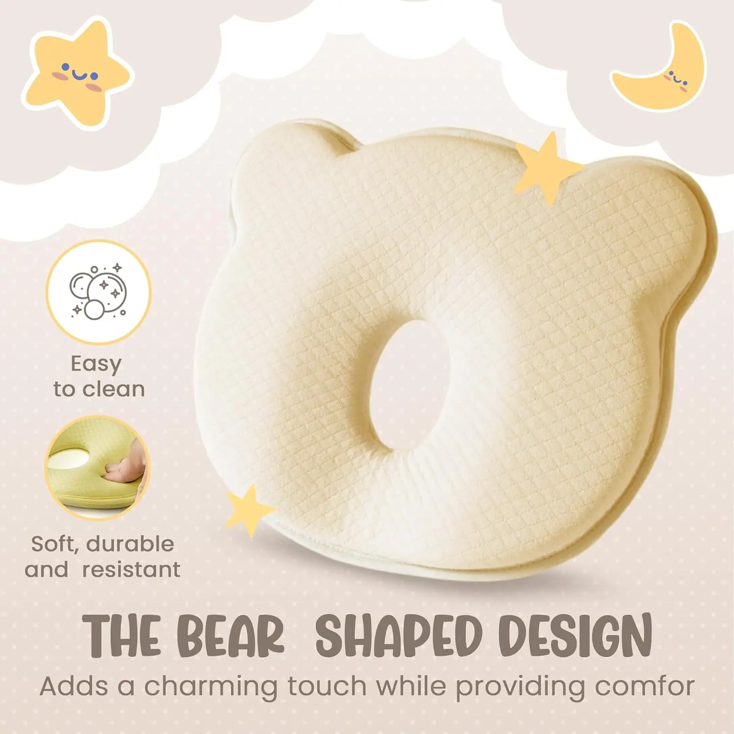 The bear-shaped design adds a charming touch while providing comfort.