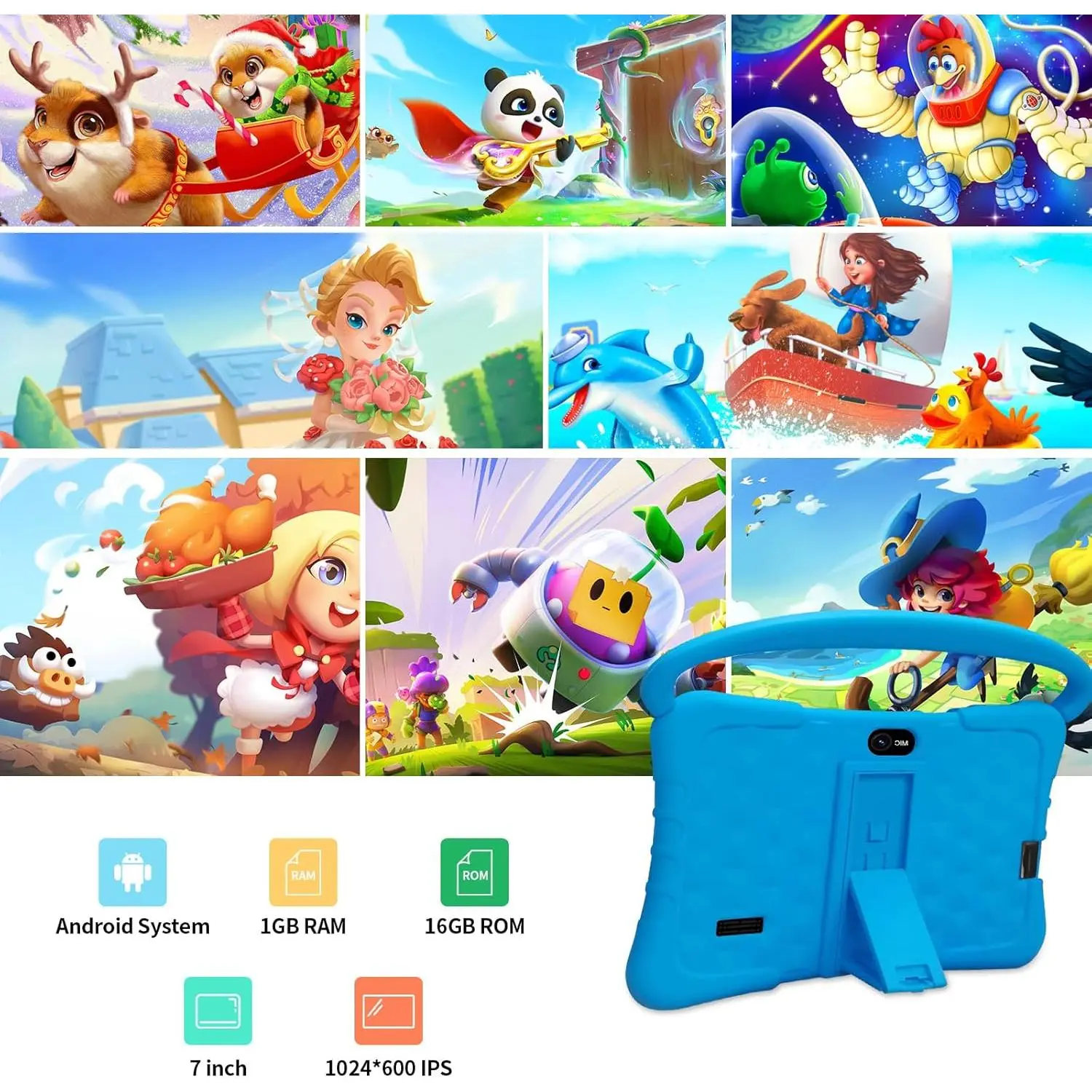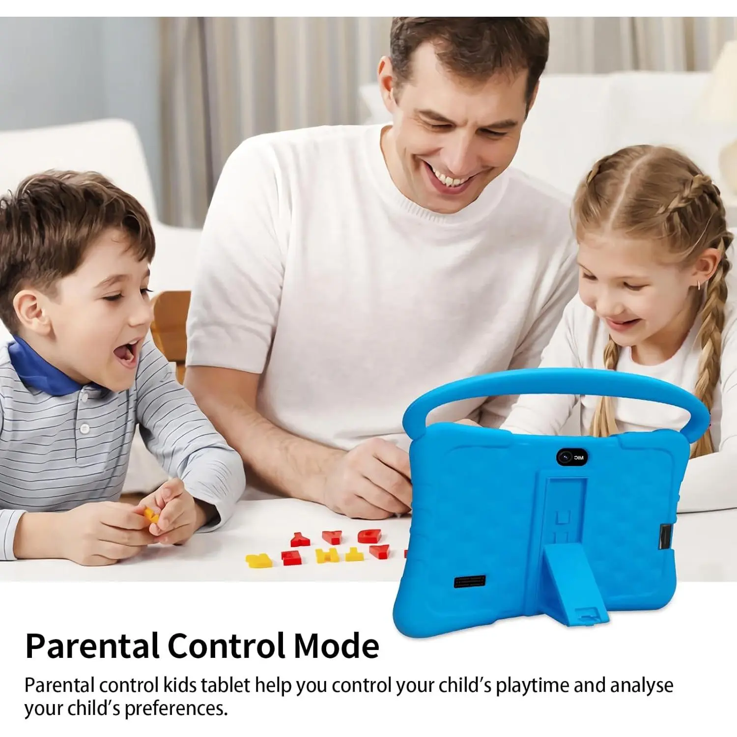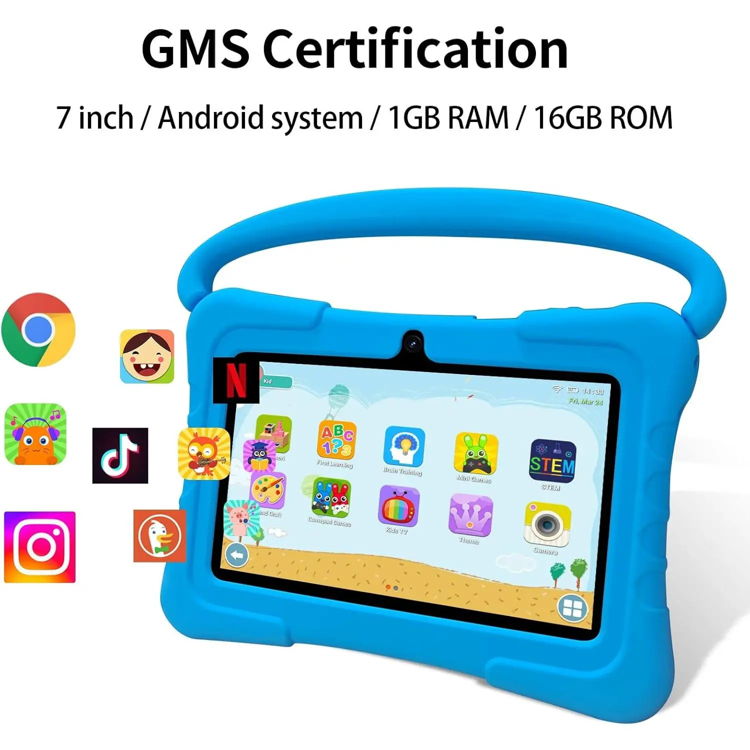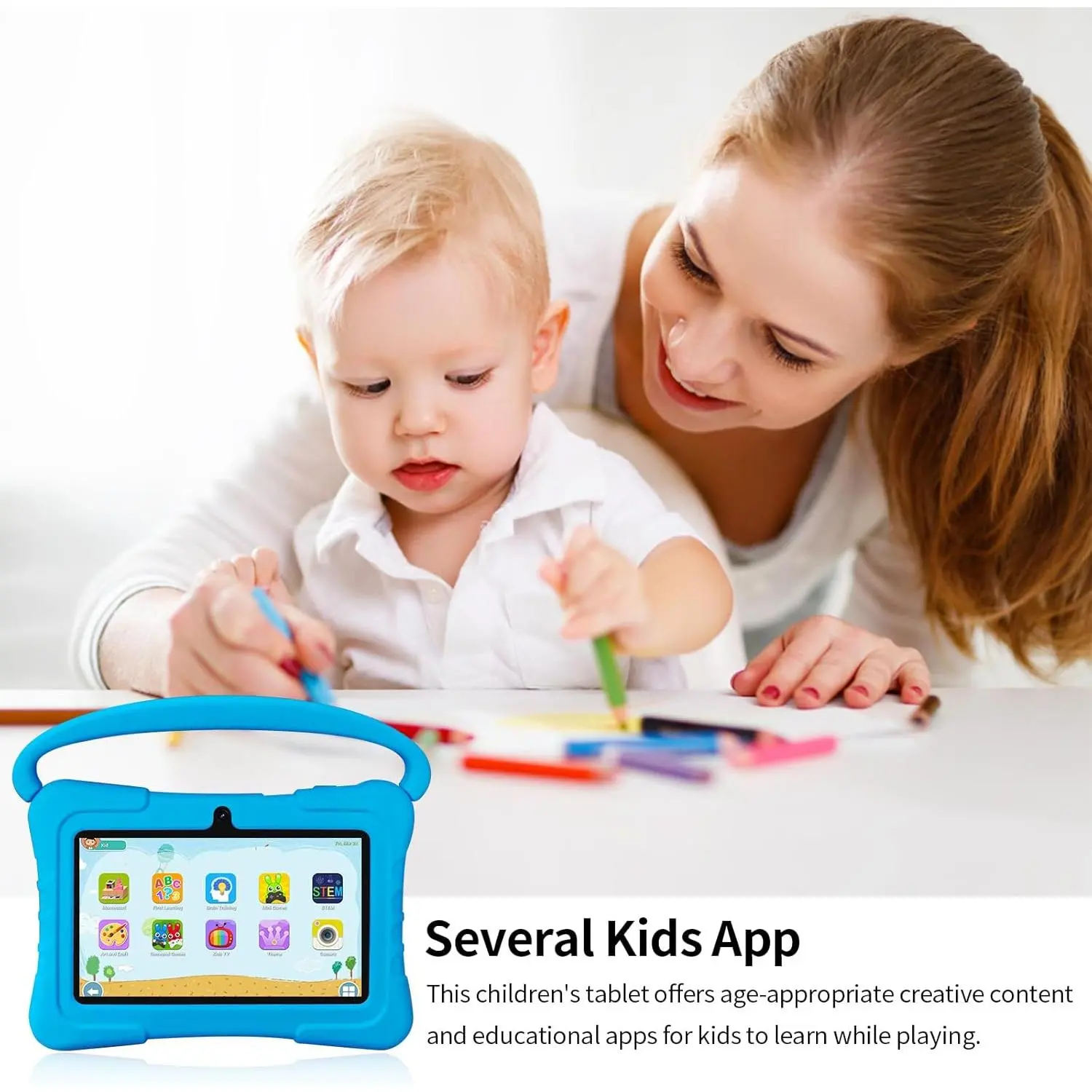 [Parental Control Mode]Tablet with parental control mode, You can create and customize profiles for’ accounts, hand-pick content for your, control screen time, and ensure they are browsing safe websites. These security settings can be adjusted as grow with content tailored to their. Appropriate Grade Over 3 years old[Large Storage and Battery Upgrade]1024x600 IPS FHD Touch Screen, Android System, 1GB + 32GB, Wifi, Bluetooth, dual camera. you can expand the storage to 128 GB of SD cards for storing photos, music and videos with additional micro SD card extensions. The upgradedbatterycan last more than 6 hours, suitable for long-distance flights or road trips[Multiple Function Tablet for]Our tablet for has so many apps already pre-installed on the tablet such as abcmouse ,Youtube, Netflix, play, many interesting puzzle games, books, music, movies, and art learning. with hundreds of free pre-installed applications, children's tablets make it easy for a to explore games, Media, e-Book, Painting, and Notes[Tablet with Case]The tablet case that can stand, so don't need to hold the tablet all the time while learning, watching and playing games. The case is made of soft silicone material that protects the tablet from scratches, bumps, and drops, etc. let the fondle admiring[1-year Warranty]Our tablet offers a 1-year warranty and Lifetime customer service, we will answer your any questions within 24 hours. Package includes:1 x Tablet PC, 1 x Protective Silicone Case, 1 x screen protector ,1 x Data Cable, 1 x User Manual