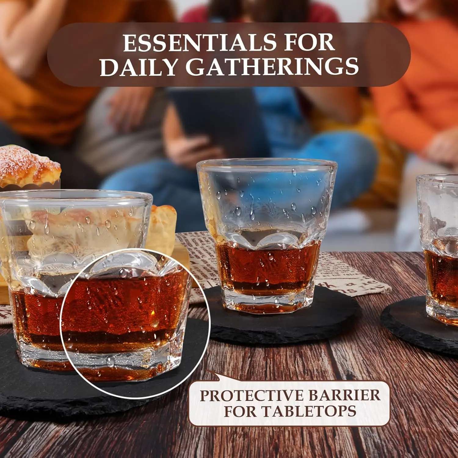 NON-SCRATCH PADS: Each of Coasters is equipped with 4 non-slip pads on the bottom. This means they provide a secure grip on any surface, preventing any potential or to your furniture. your drinks without worrying about the safety of your surfaces with our carefully designed coasters.