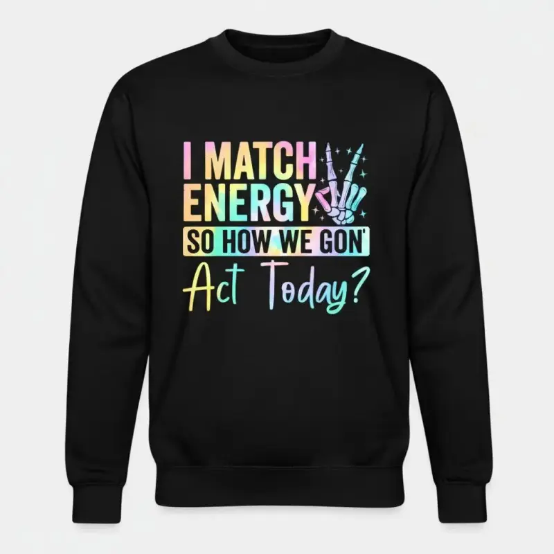"I MATCH ENERGY SO HOW WE GON Act Today?" Hoodie Featuring Vibrant Typography and Symbol Soft Fabrics and Bold Graphics