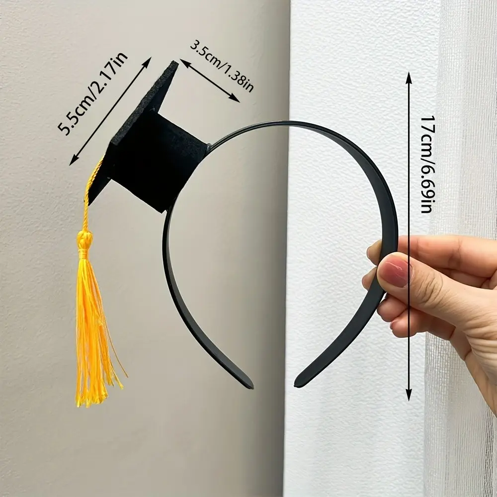 [Black Graduation Cap] 1pc Black Graduation Cap Headband | Woven Non-Woven Fabric, Doctoral Hat Design, Four Seasons Popular Culture Theme, Suitable for Dressing Up And Gifts