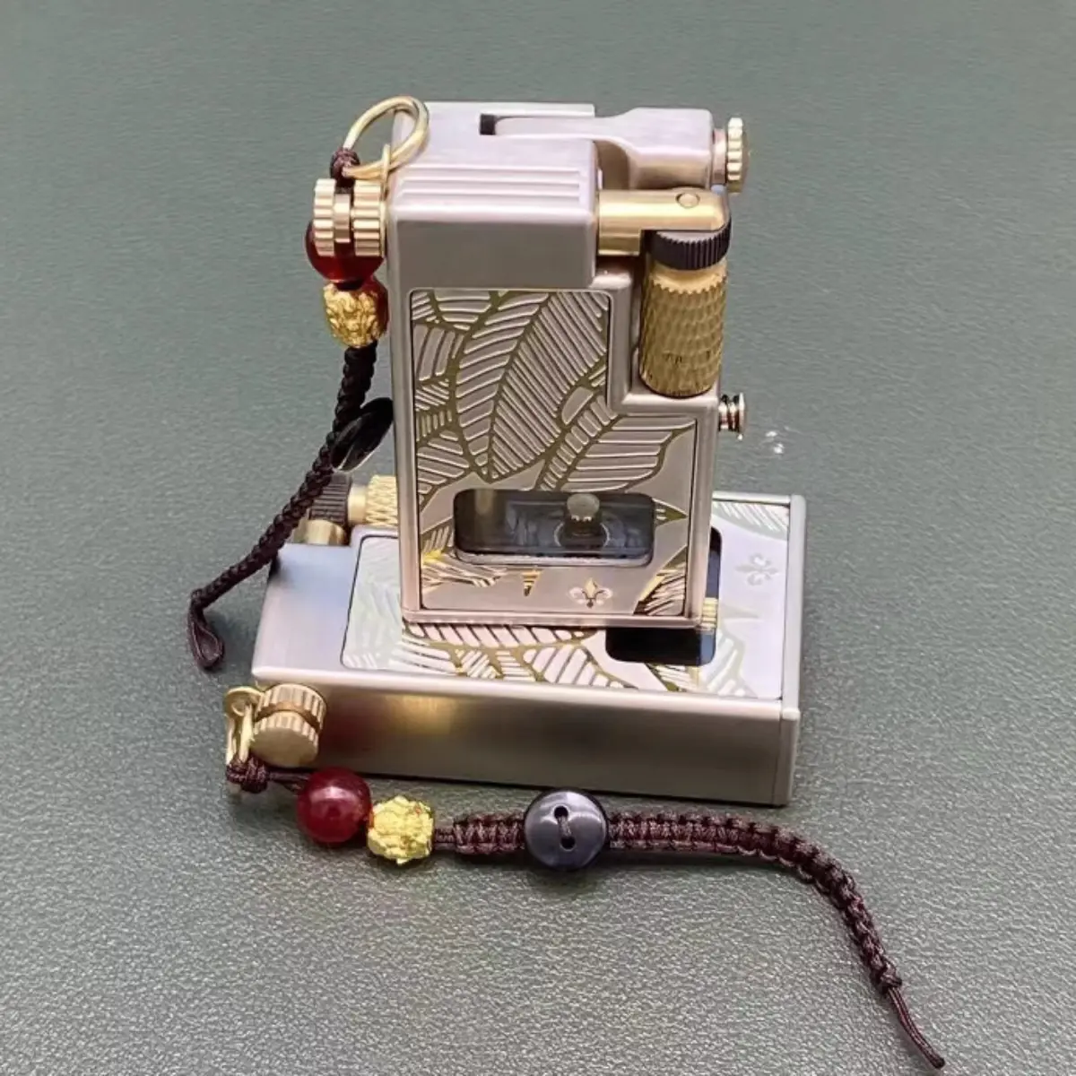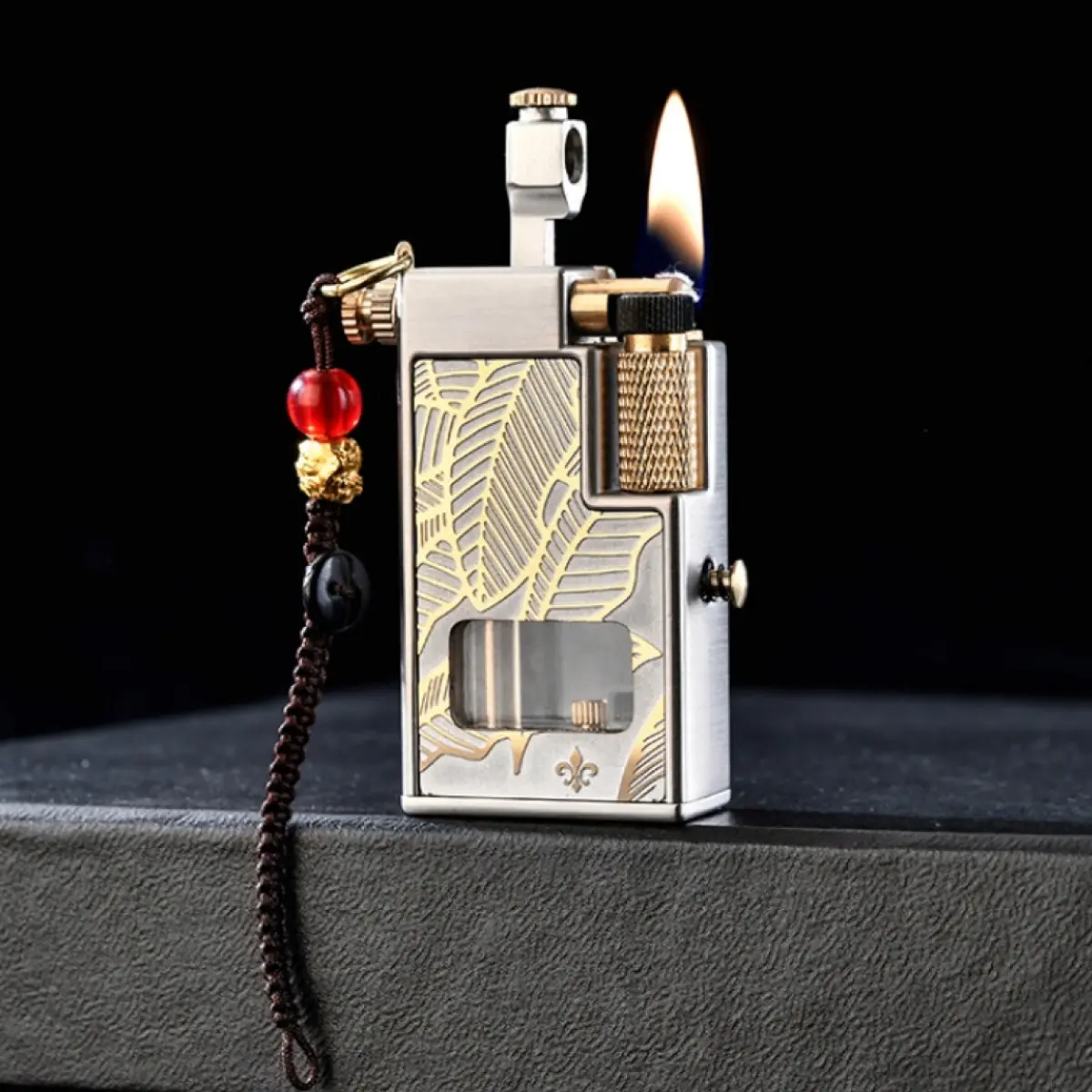 Elegant Vintage Liquid Lighter Full Metal Body Clear Oil Tank Durable Portable Igniter Perfect Gift For Father Him Men (Without Fuel)