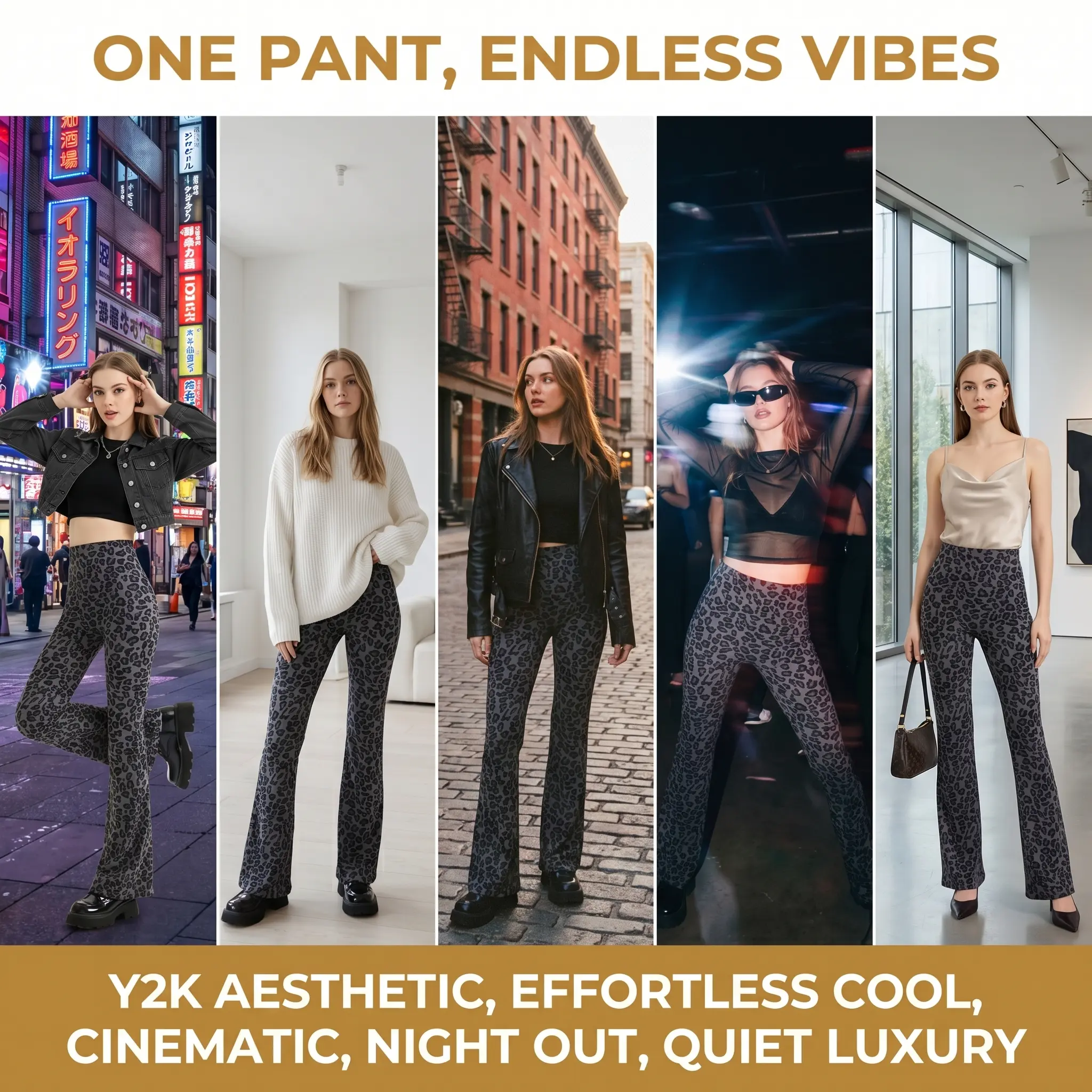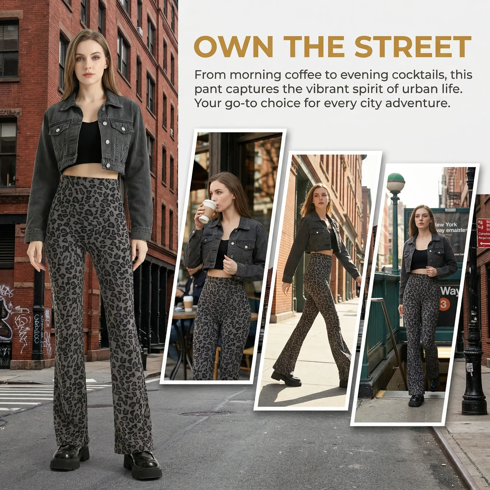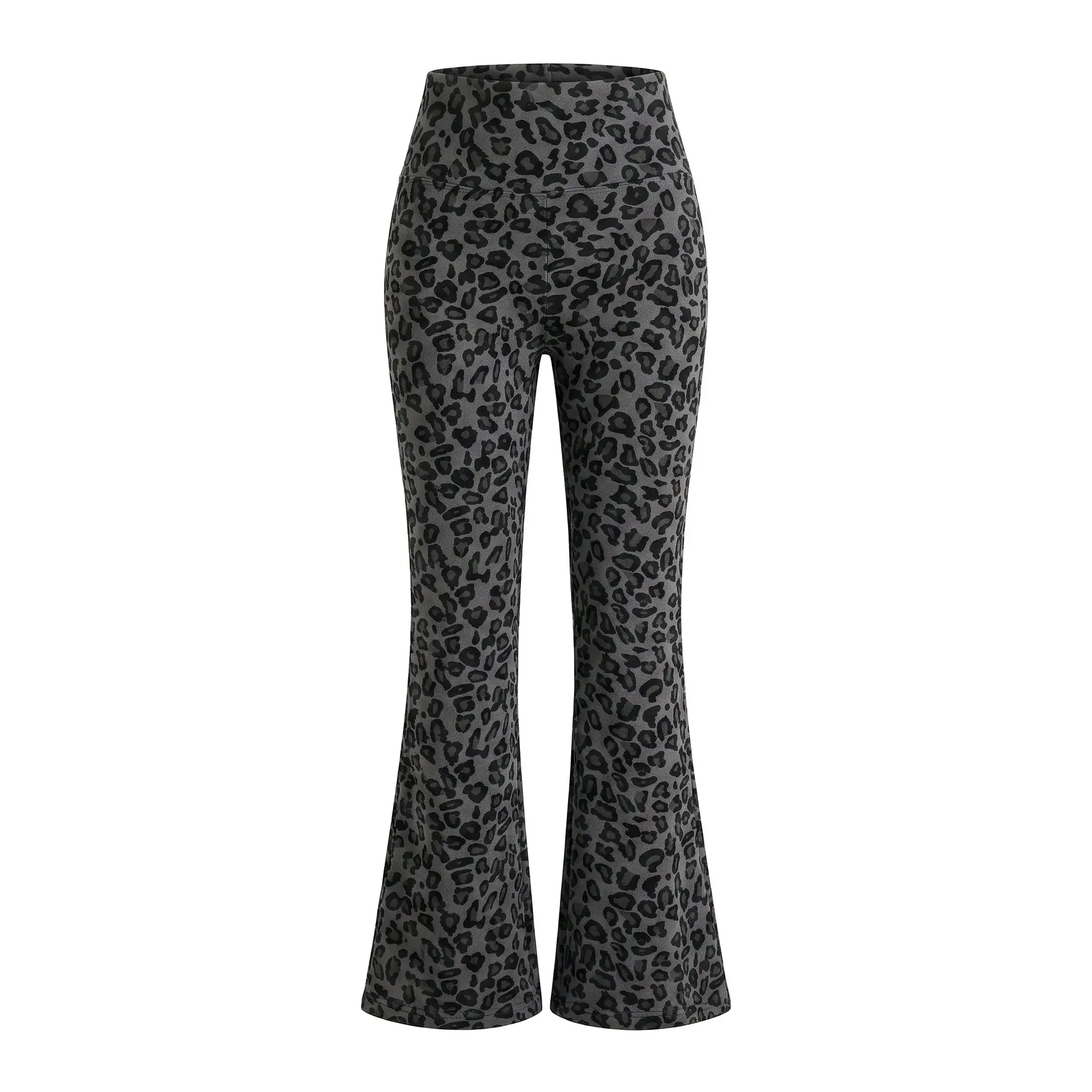 Women's retro leopard print high waisted flared pants - women's yoga pants - waist yoga pants roll control bell bottoms fit pants Y2K yoga, gym and casual sports women's high waisted, yoga flared pants tight sportswear