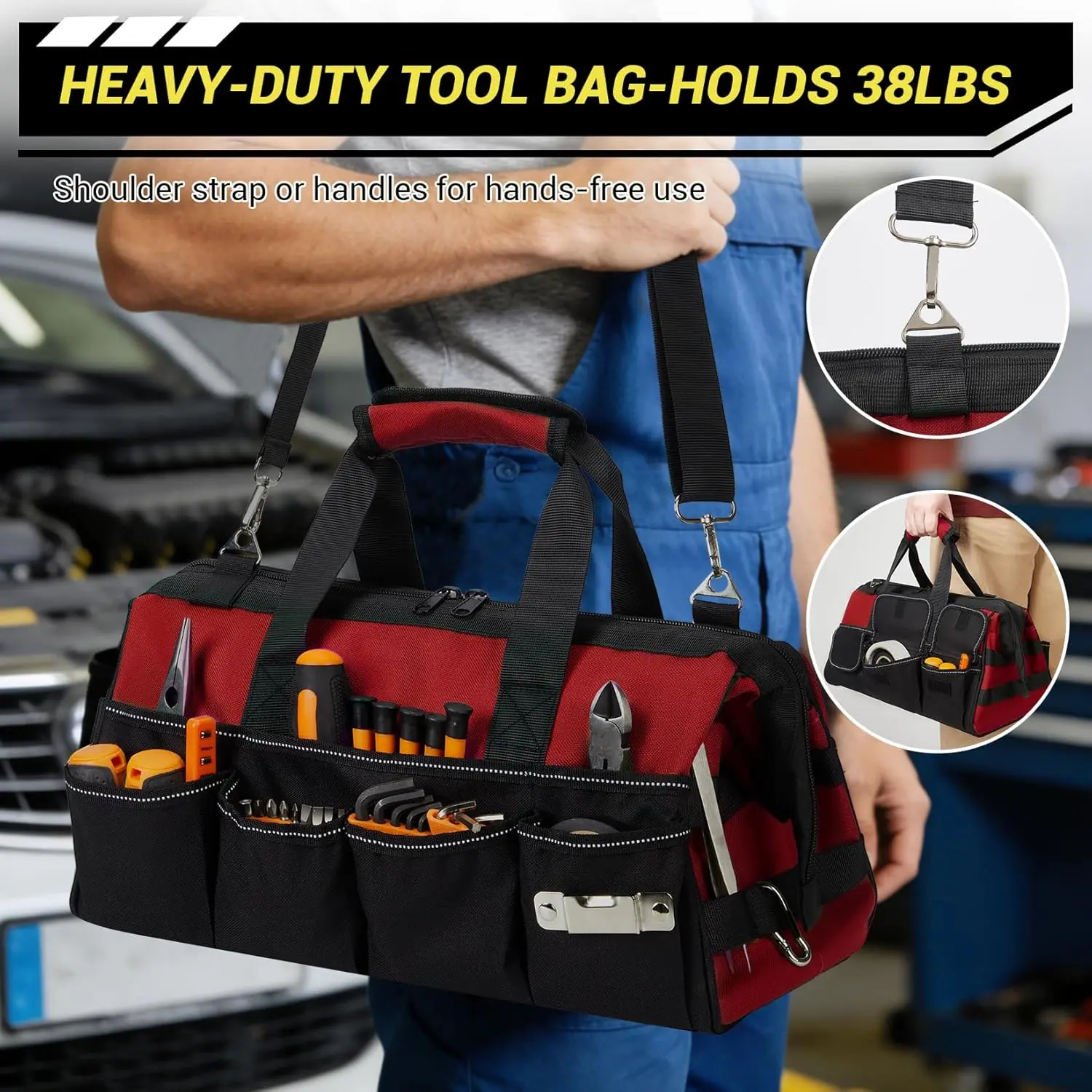 ·✔【Compact & Portable Design】Comfortable handle for quick grab-and-go convenience, plus padded shoulder straps for hands-free carrying. Two hanging loops let you hang it on walls, garages, or workshops while working—always within reach.