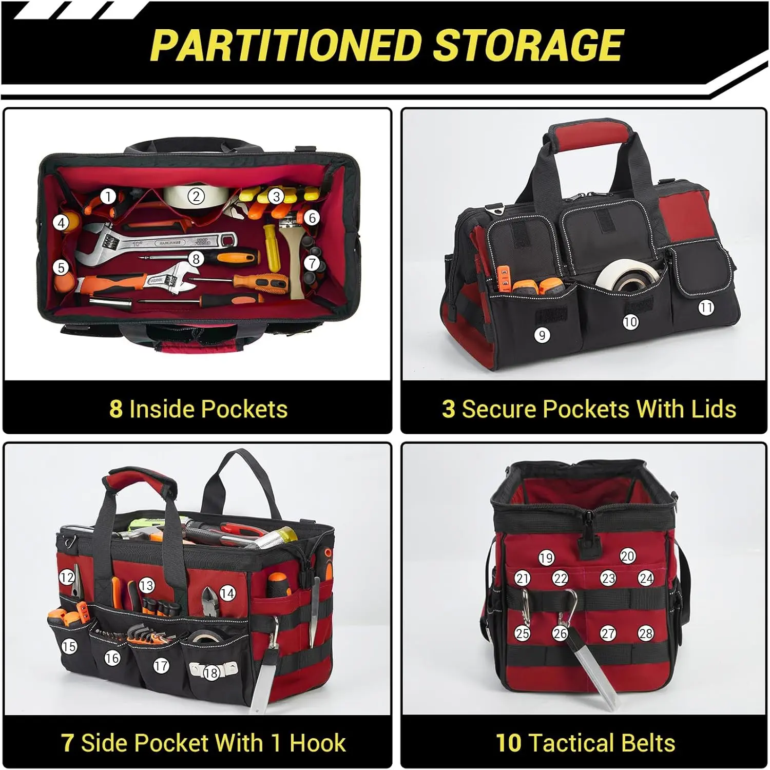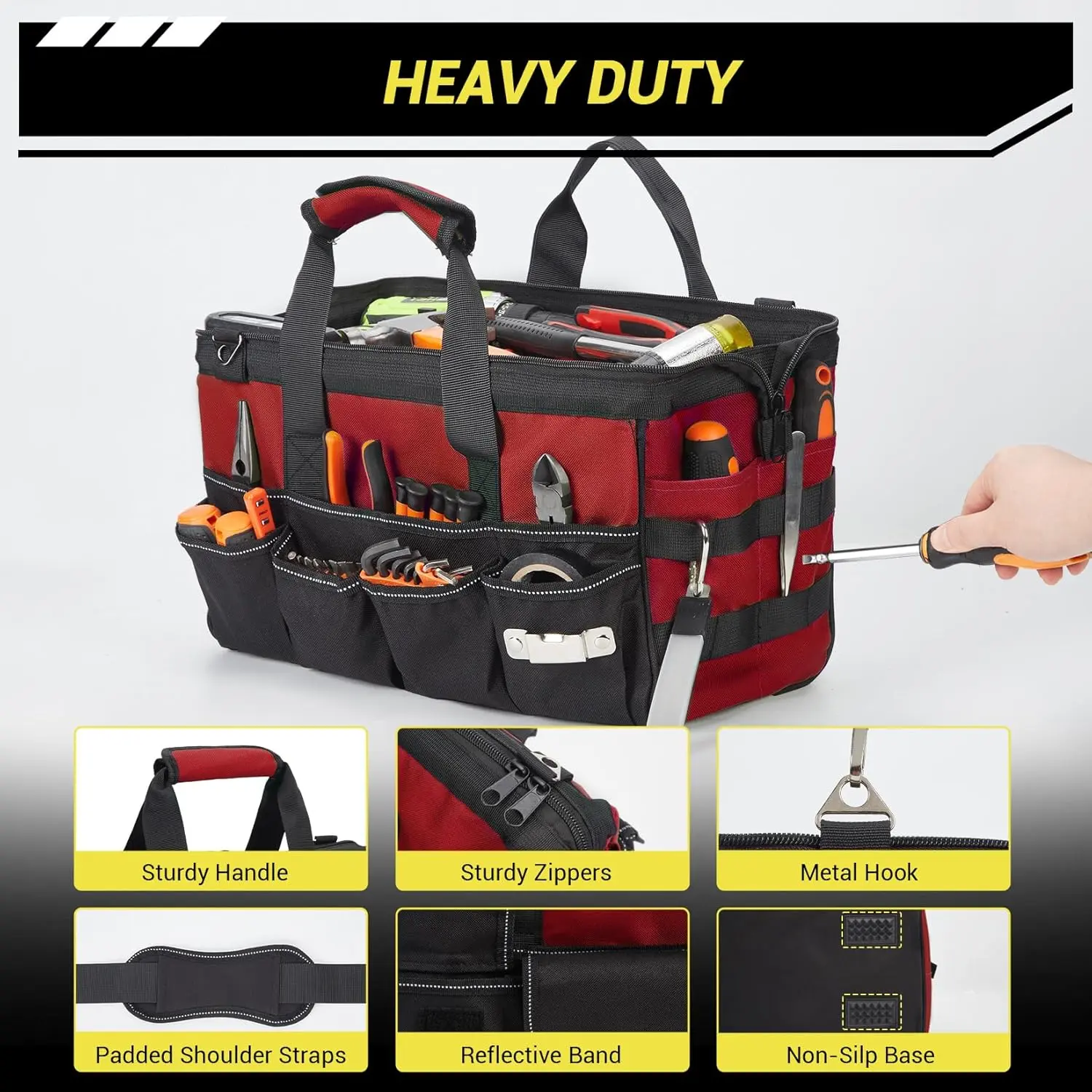 ·✔【Large Capacity Tool Organizer】Features 2 large pouches, a wrench roll, and 2 detachable pouches with D-rings. This tool organizer keeps wrenches, pliers, screwdrivers, and accessories neatly separated—no more digging through a cluttered bag.