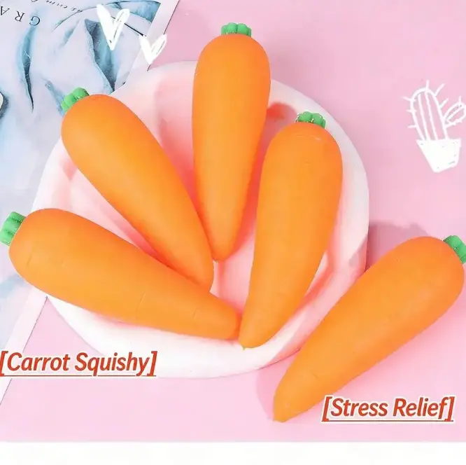 This 5-inch carrot squishy is ultra soft and super satisfying to squeeze! Perfect for stress relief and sensory play for all ages. Its unique design makes it a fun DIY toy. Ideal for anyone looking for a playful and relaxing experience.