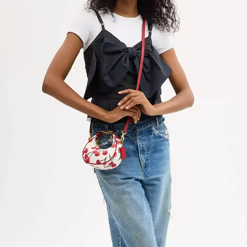 Design Concept: Inspired by vintage botanical illustrations and downtown NYC energy, the Jonie 15 features a playful cherry print on premium leather—blending nostalgia with contemporary versatility. Its compact shape balances function and fashion for everyday wear.