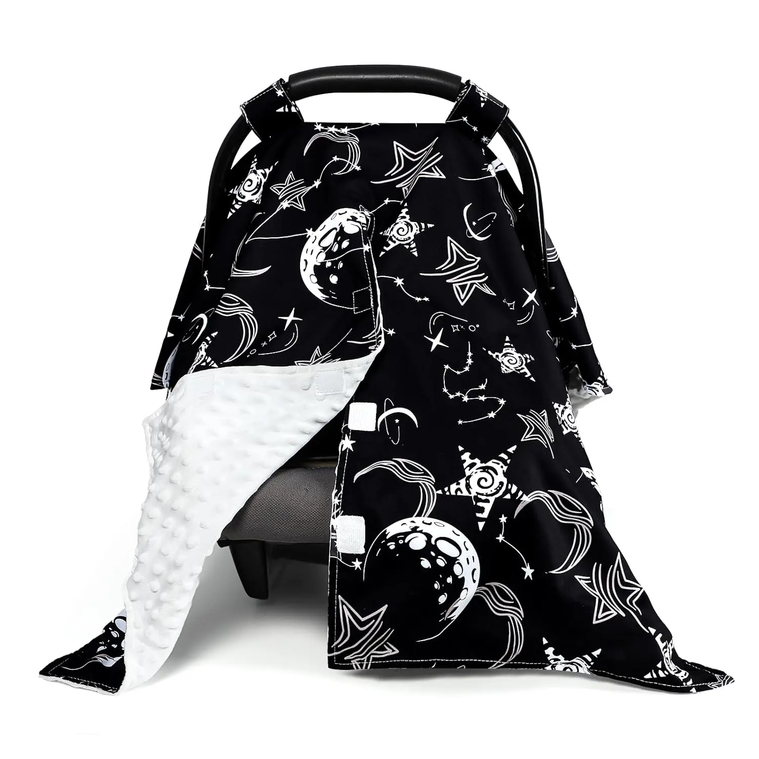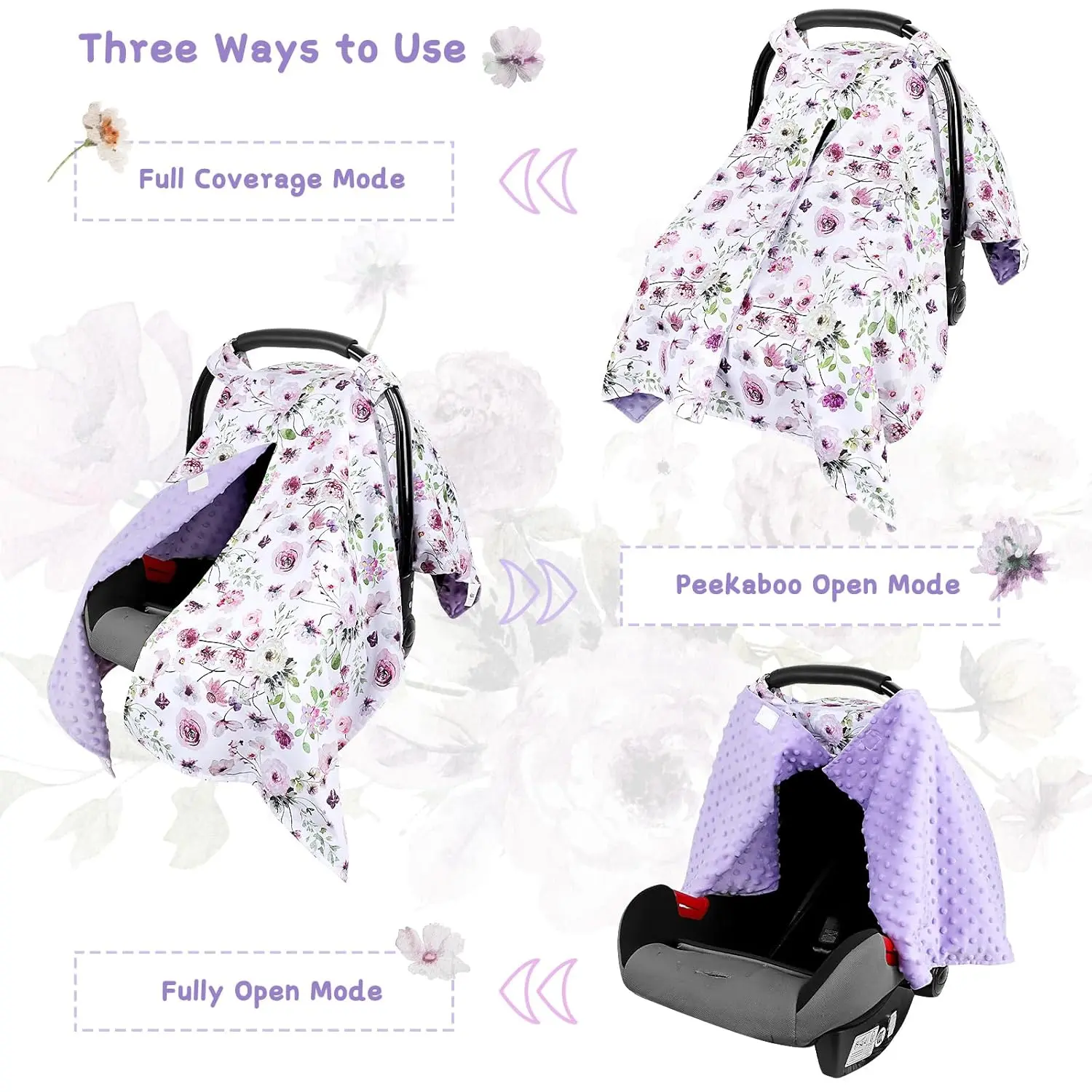 Baby Car Seat Cover, Soft Minky Warm Winter Car Seat Canopy for Infants & Toddlers, Opening with Adjustable Strap, Breathable Nursing Cover & Stroller Blanket, Purple Flowers (Fits Most Car Seats)