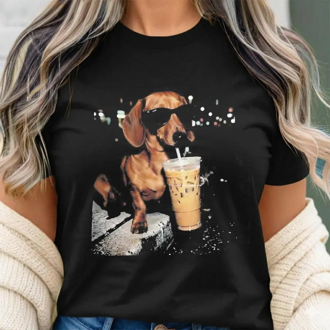 Funny Dachshund Drinking Iced Coffee Vintage T-shirt Wiener Dog Owner Gift Retro Tshirt