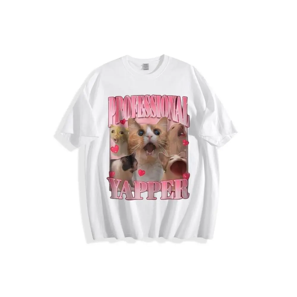 Professional Yapper Cat & Dog Graphic T-Shirt - Casual Crew Neck Cotton Tee, Super Soft, Summer Breathable Top - Playful Whimsical Animal Design with Pink Text & Hearts, Cute Pet