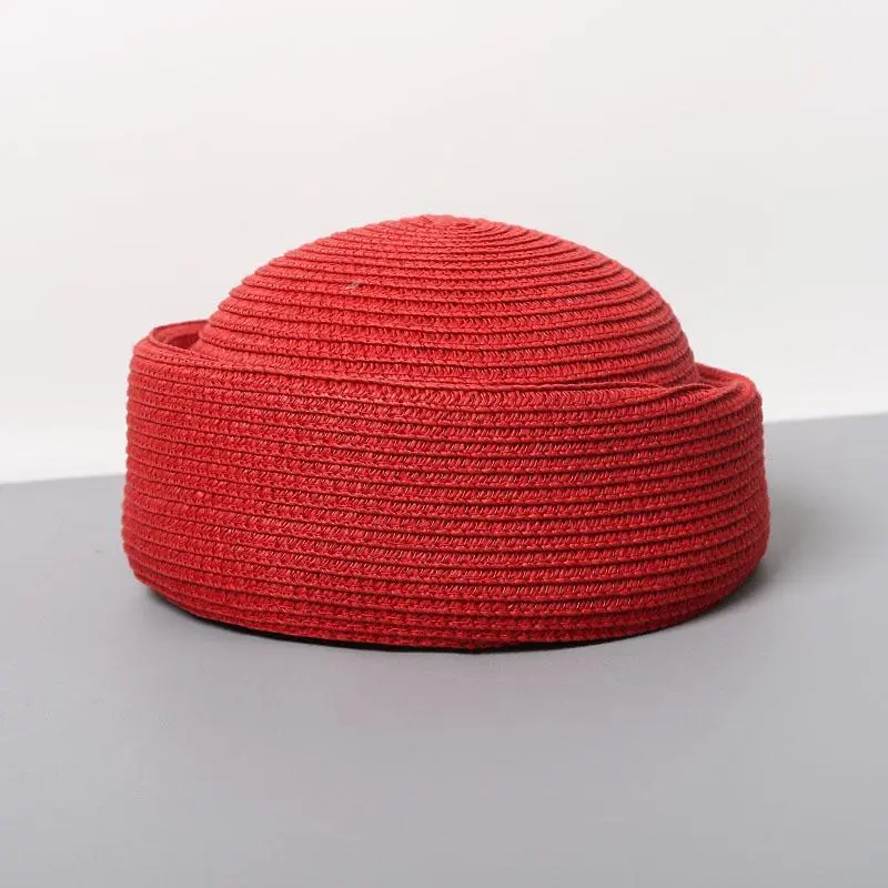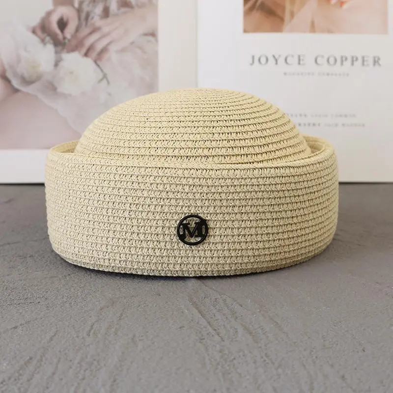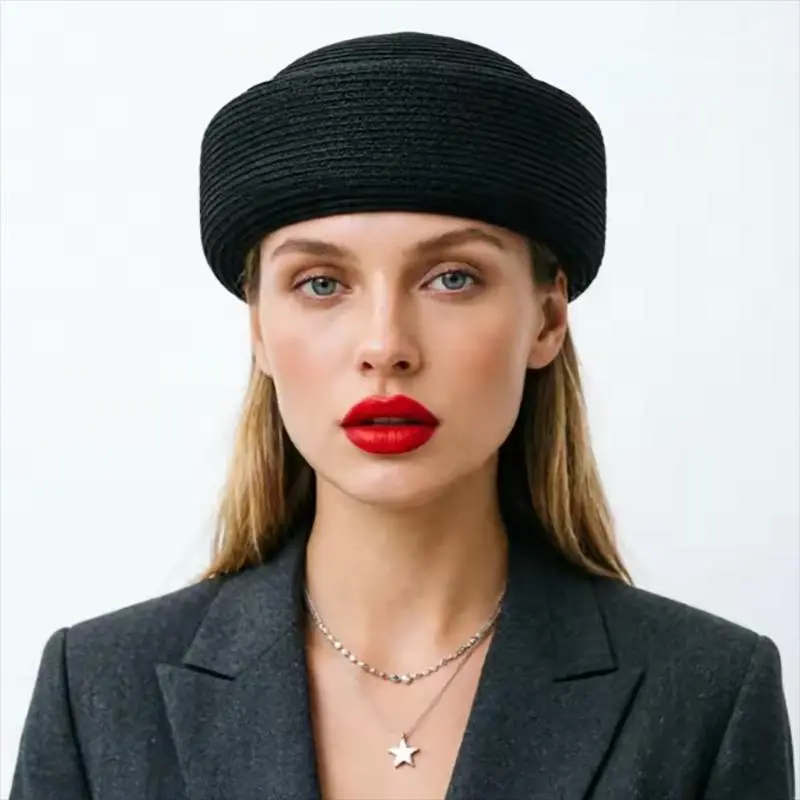 Straw Pillbox Hat Summer Beret Sun Hats Japanese Retro Weeding Fedora Hostess Fashion Millinery Fascinator Designer Painter Hat
